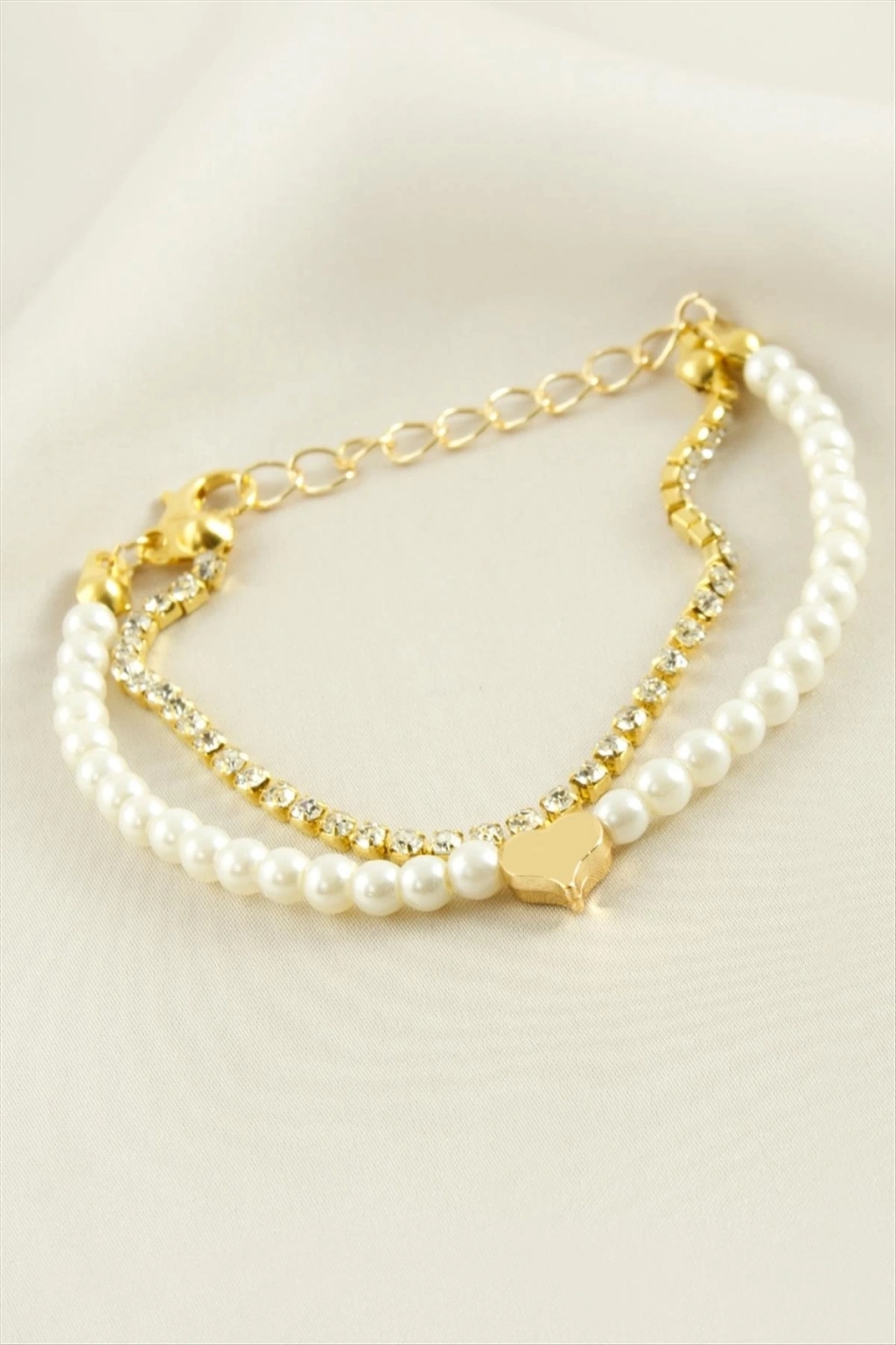 Kalp Şerit Taşlı İnci Bileklik