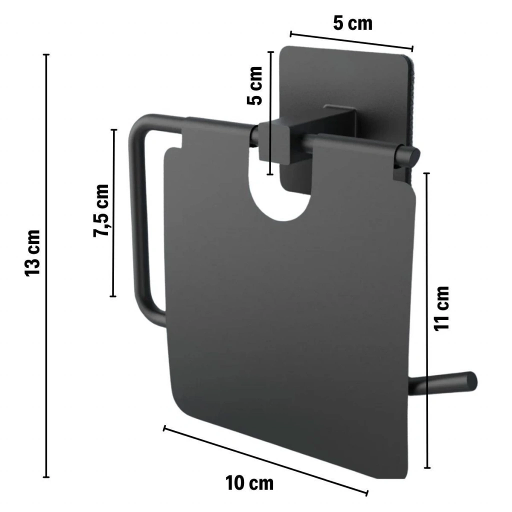 • Kendiliğinden Yapışkanlı Siyah Paslanmaz Metal Kapaklı Tuvalet Kağıtlığı Aparatı