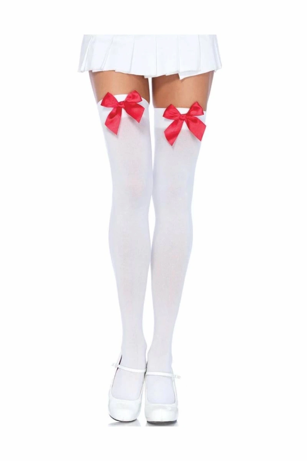 ÇOK SATAN Kırmızı Fiyonklu Beyaz Jartiyer Çorabı TM1147