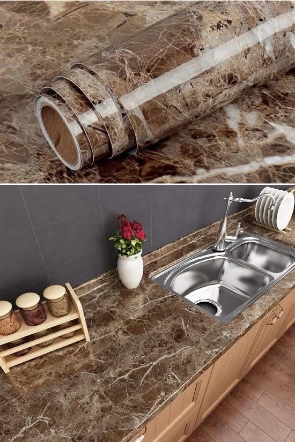 Granit mermer görünümlü yapışkan duvar kağıdını istenen yüzeye yapıştırabilirsiniz
