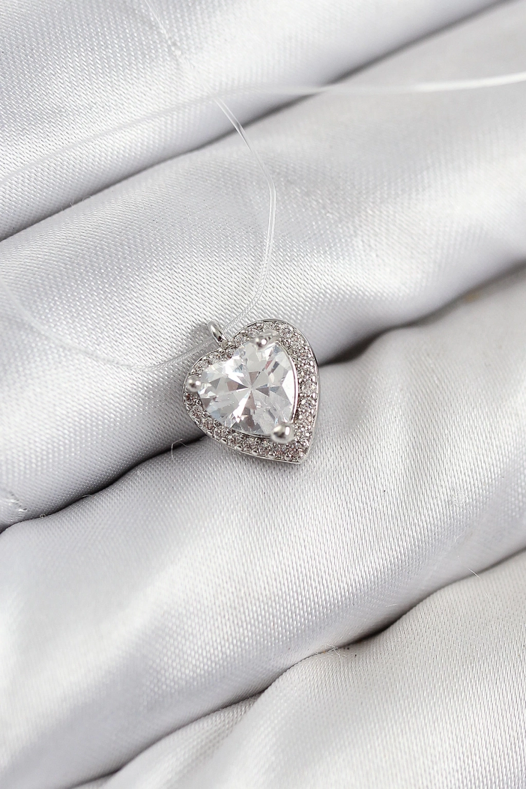 ÇOK SATAN 316L Çelik Zincir Gümüş Zirkon Taşlı Kalpli Kadın Kolye