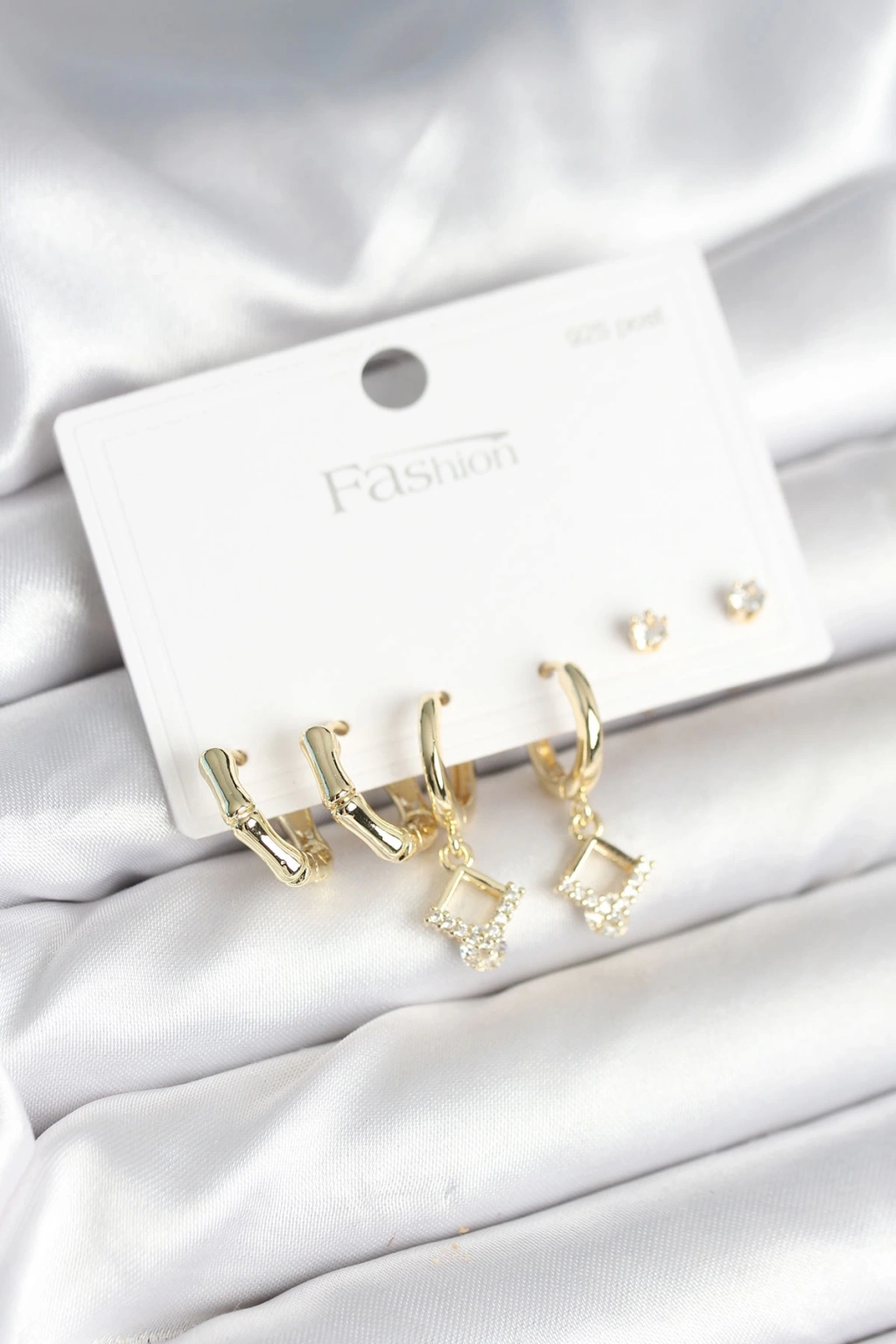 ÇOK SATAN Pirinç Gold Renk 925 Ayar Gümüş Çivili Kadın Küpe Seti