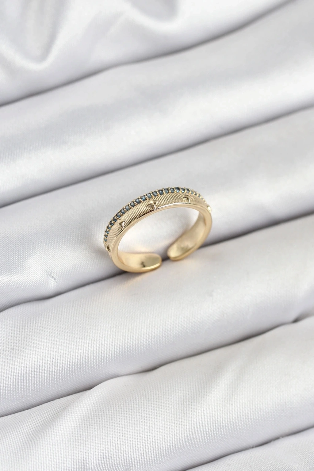 ÇOK SATAN Pirinç Gold Renk Sıralı Zirkon Taşlı Kutup Yıldızı Model Kadın Yüzük