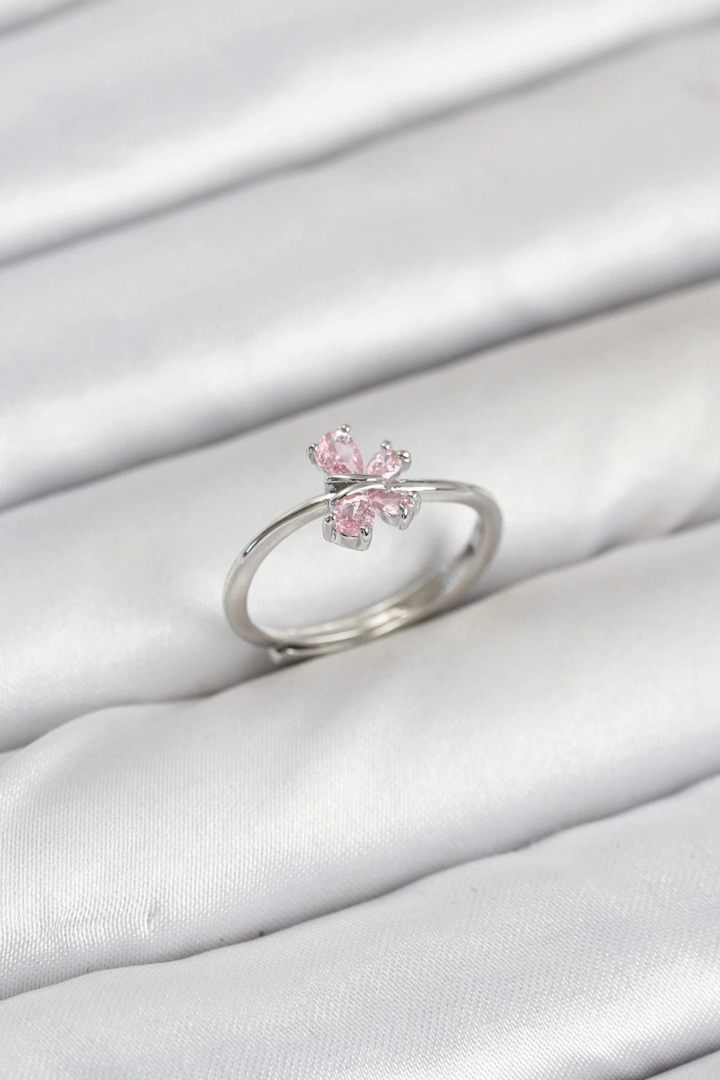 • Pirinç Gümüş Renk Pembe Kelebek Kadın Yüzük