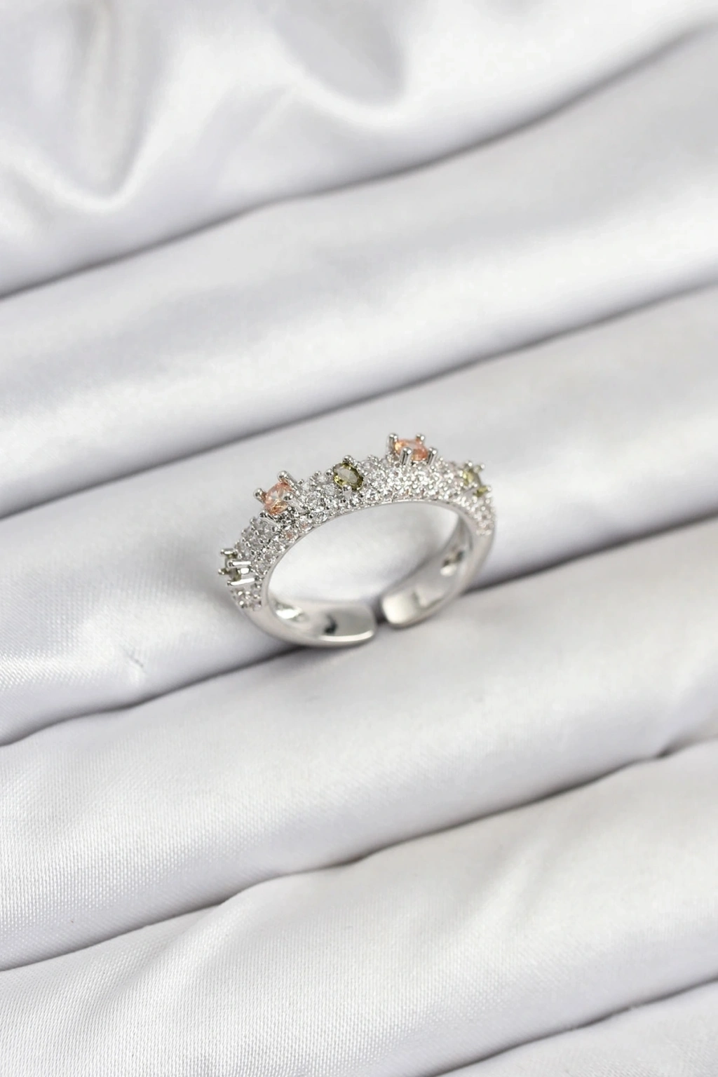 ÇOK SATAN Pirinç Gümüş Renk Zirkon Taşlı Vintage Kadın Yüzük