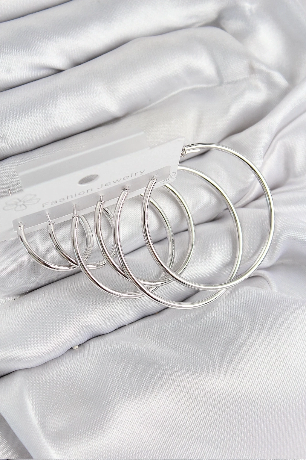 ÇOK SATAN Pirinç Halka Model Gümüş Renk Kadın Set Küpe