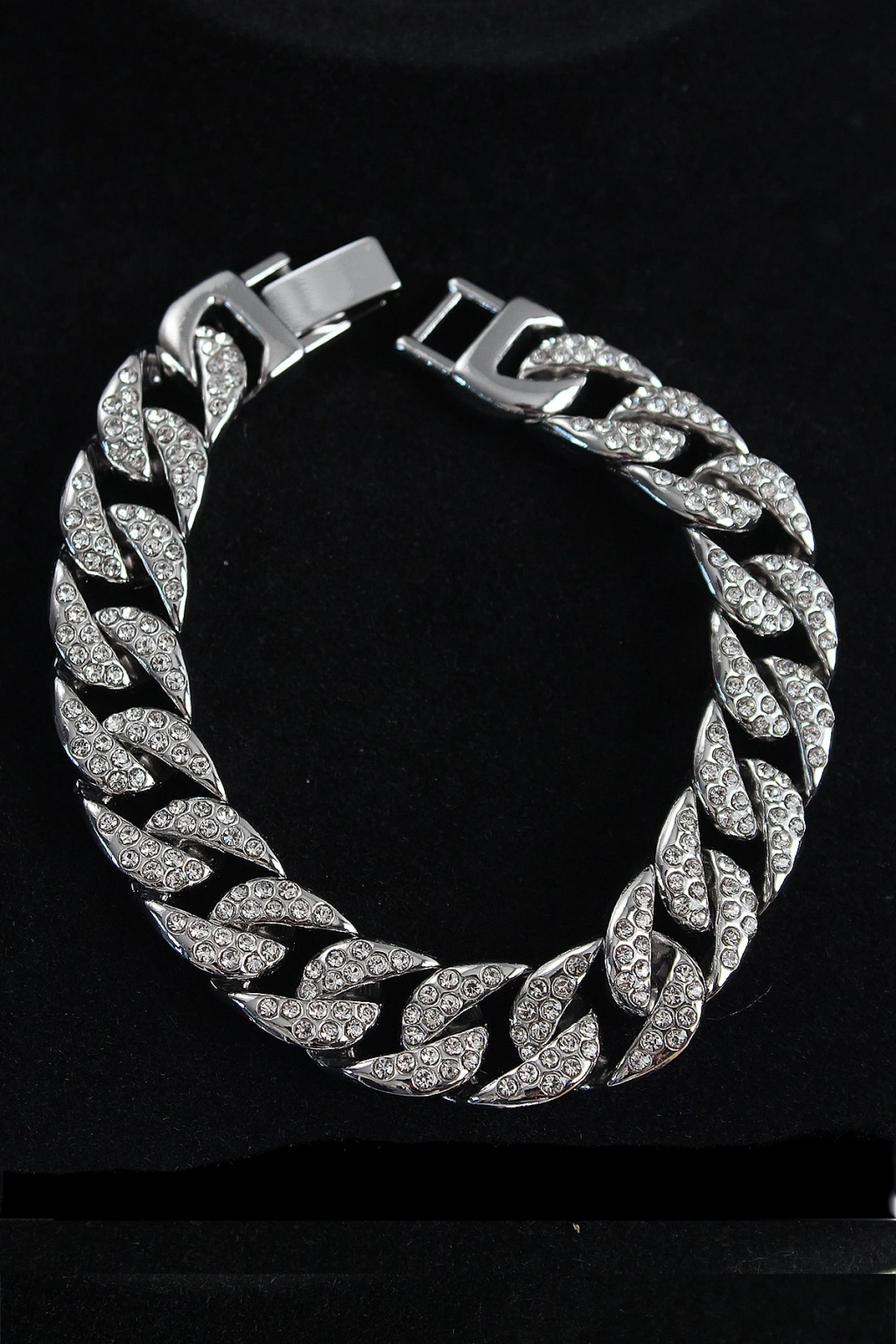ÇOK SATAN Pirinç Zirkon Taşlı Cuba Gurmet Model Gümüş Renk Erkek Bileklik