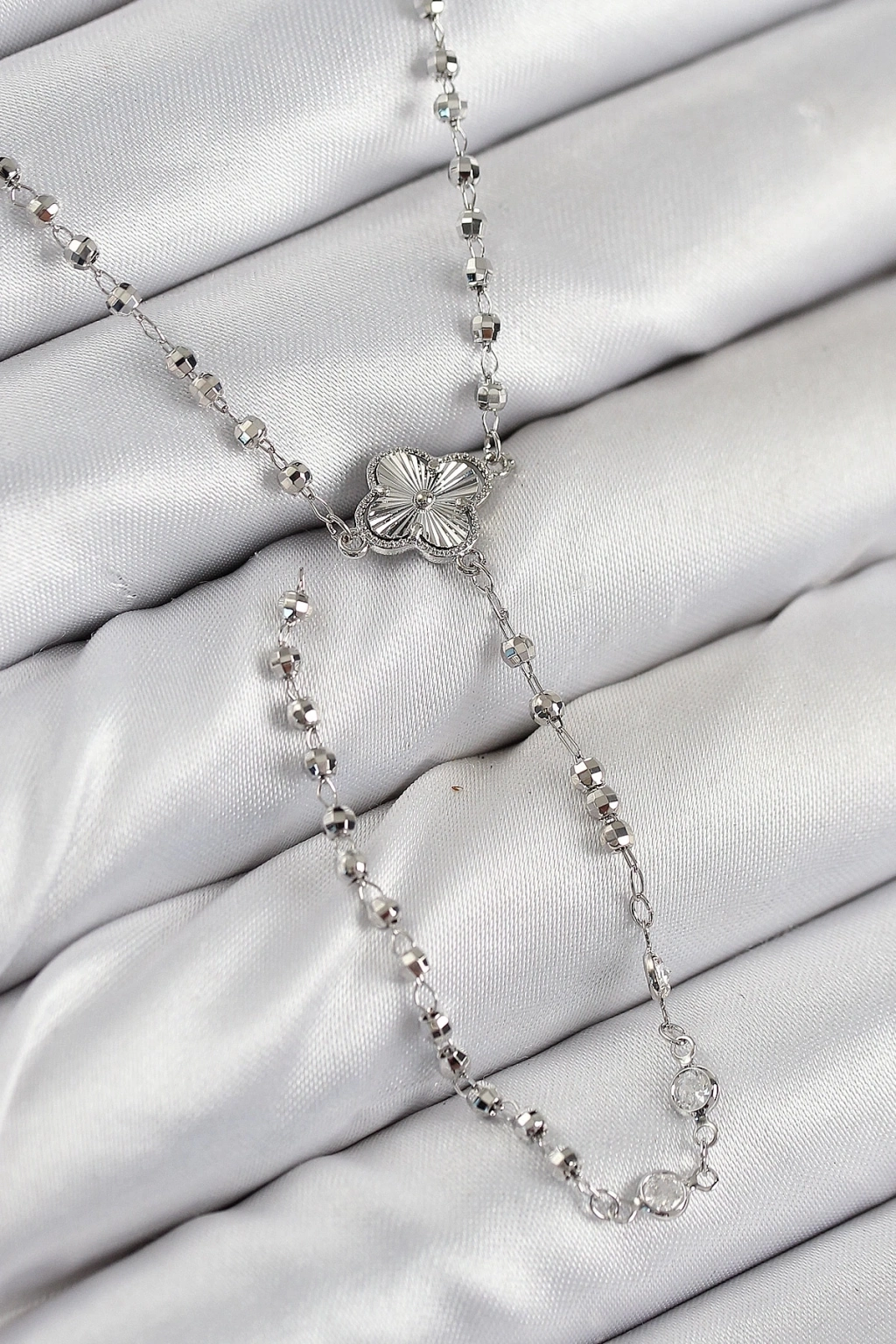 ÇOK SATAN Pirinç Zirkon Taşlı Yonca Model Gümüş Renk Kadın Y Kolye