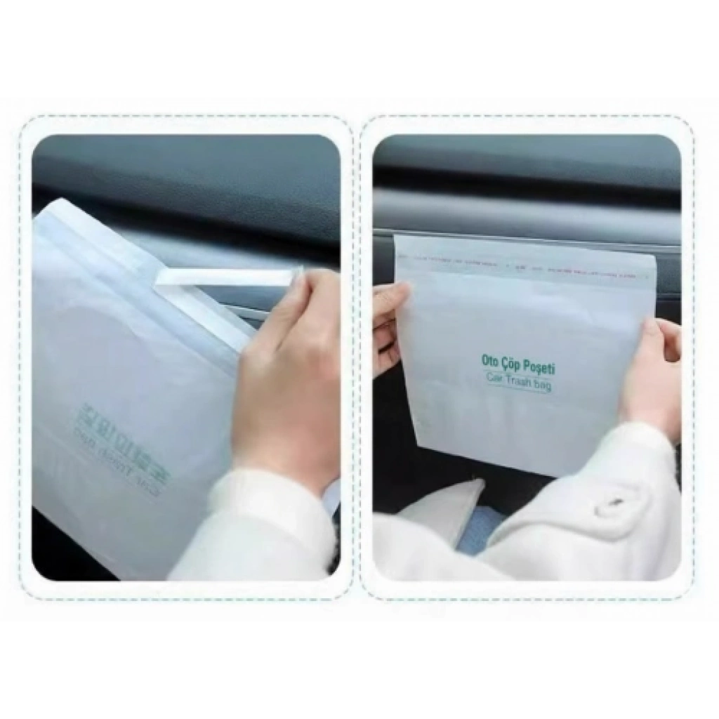 Pratik Su Geçirmez Oto Araba Çöp Poşeti – Yapışkanlı (20 Adet)Aracınızda temizlik ve hijyenin pratik yolu: Pratik Su Geçirmez Oto Araba Çöp Poşeti (Yapışkanlı, 20 Adet) ile seyahat sırasında oluşan çöpler kolayca toplanır, araç içinde dağınıklık olmaz. Kolayca yapışan bantları sayesinde araç kapıları, torpido gözü ya da koltuk arkası gibi yerlere monte edilebilir; su geçirmez yapısı sayesinde sıvı atıkların dışarı sızmasını engeller.Ürün Özellikleri:Pakette 20 adet tek kullanımlık çöp poşetiSu geçirmez materyal ile sıvı sızıntılarına karşı korumaKendinden yapışkanlı bant sayesinde kolay montaj (kapı içi, torpido gözü, koltuk arkası vb.) Ölçü: 23 x 18.5 cm Tek kullanımlık; hijyen ve pratik kullanım sağlarPaket İçeriği:20 adet su geçirmez oto araba çöp poşeti