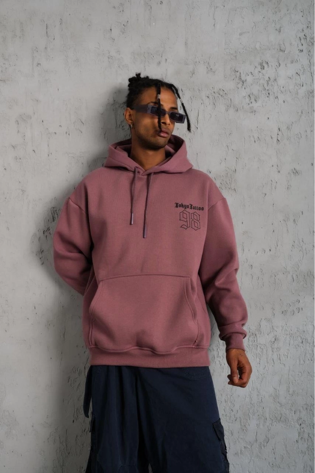 98 Baskılı Kapşonlu Sweat - Gül Kurusu