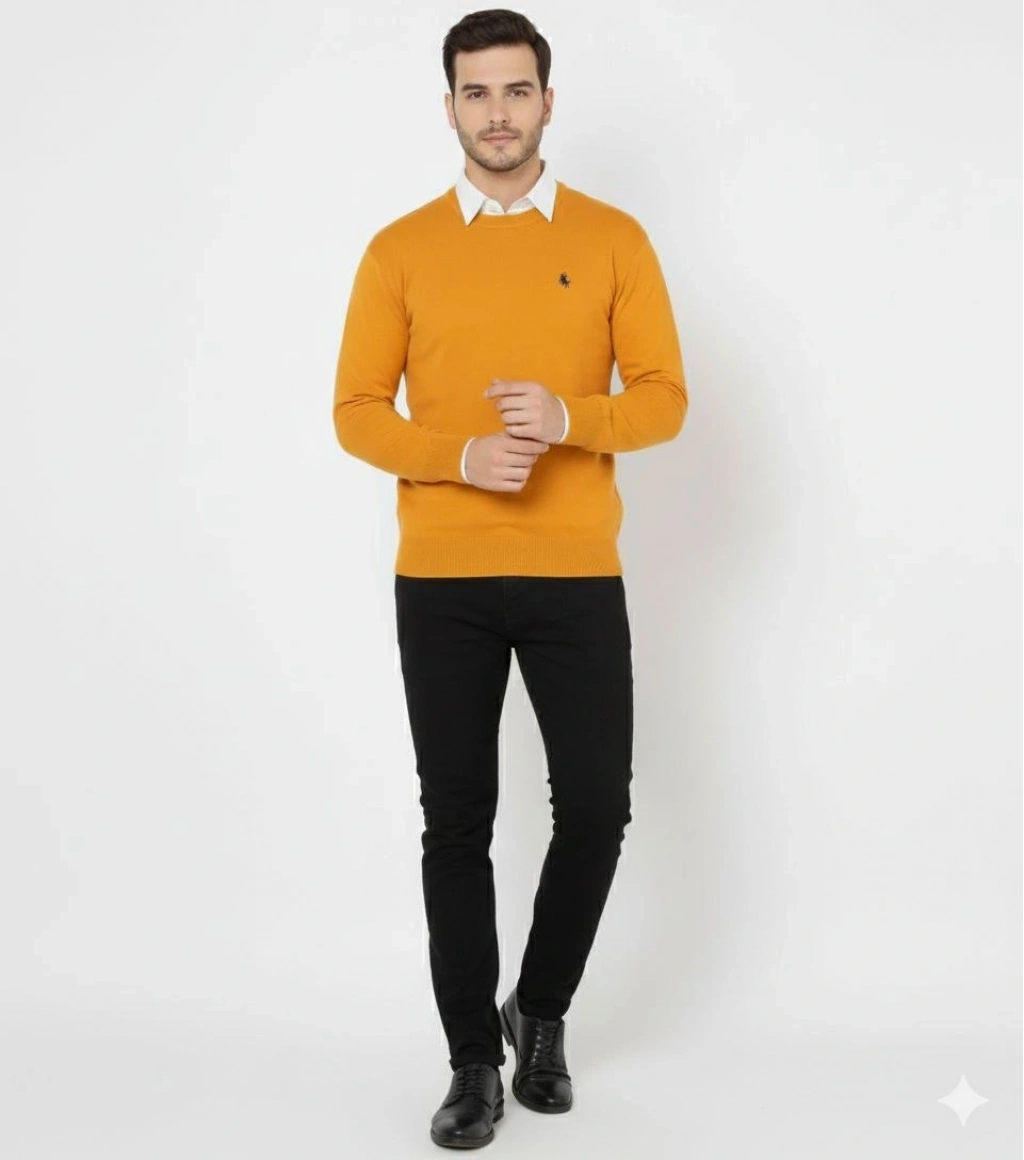 Bisiklet Yaka Nakış işlemeli Triko Kazak yumuşak dokulu Pamuklu ince Dokuma, uzun kollu Rahat Regular kalıp - Turuncu
