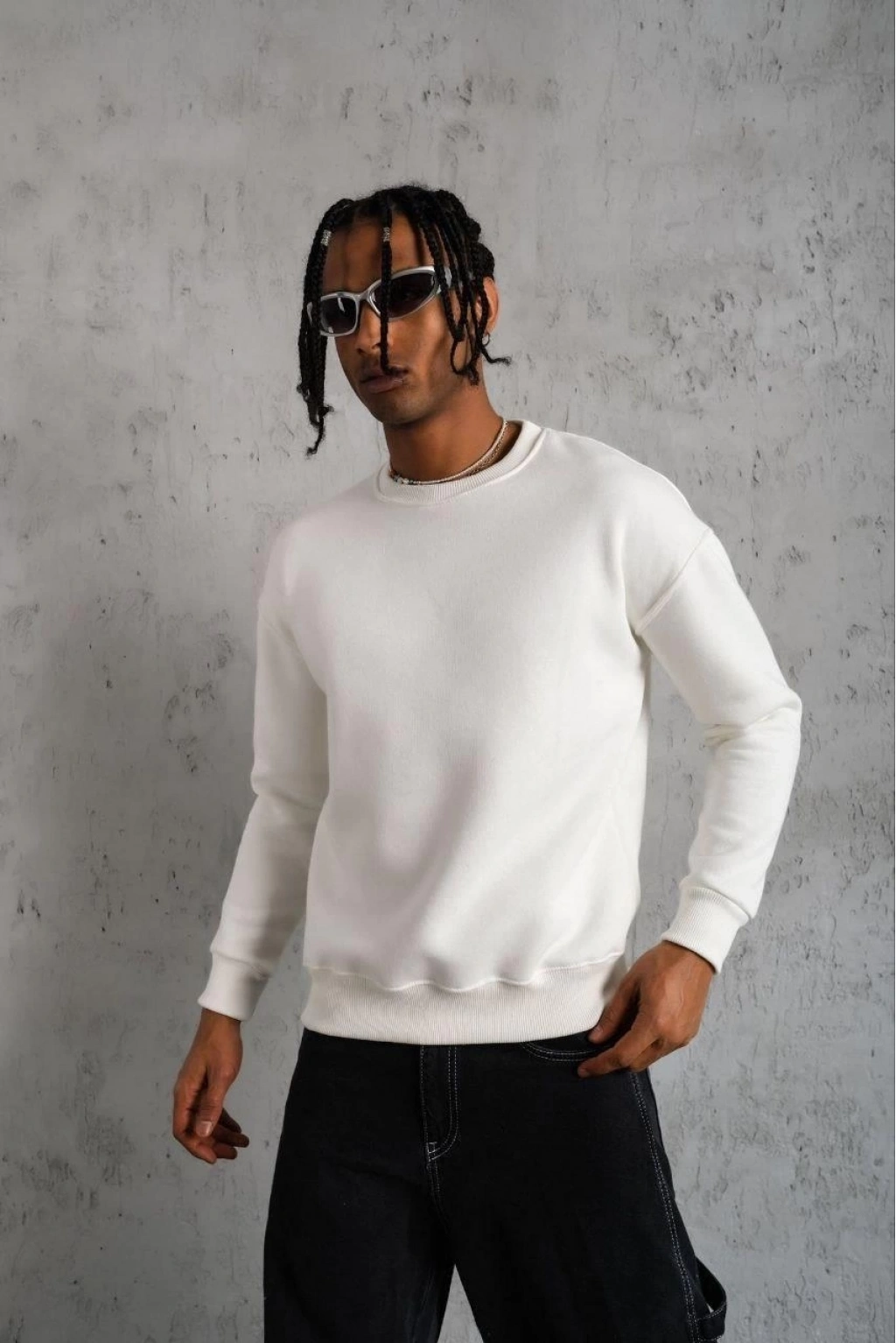 Düz Bisiklet Yaka Sweat - Beyaz