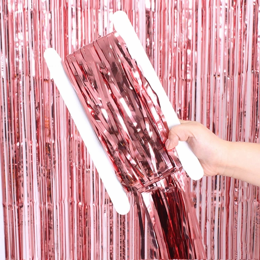 Rose Gold Renk Ekstra Metalize Parlak Saçaklı Arka Fon Perde: Işıltılı Bir Atmosfer Oluşturun