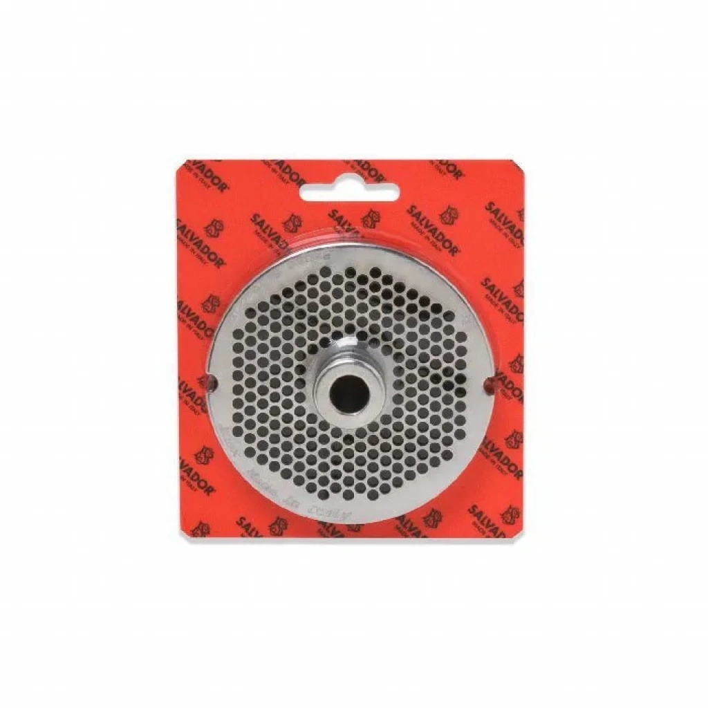 Salvador İnox Paslanmaz Kıyma Makinesi Aynası, 4 mm çapındaki delikleri ile etlerin orta büyüklükte kıyılmasını sağlar ve bu, çeşitli yemeklerin hazırlanması için ideal bir seçenektir. Paslanmaz çelikten üretilmiş olup, yüksek dayanıklılık ve hijyenik özellikler sunar. Kıyma makinesi ile uyumlu olacak şekilde tasarlanmıştır ve profesyonel mutfaklarda güvenilir bir performans sağlar.