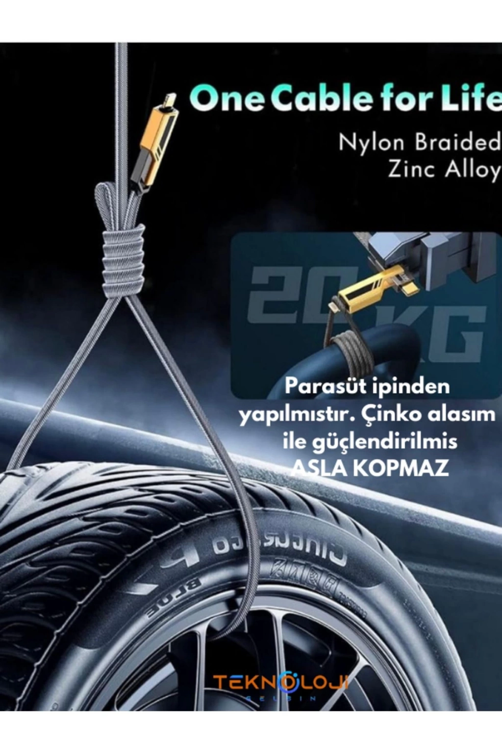 Özel paraşüt ipinden üretilmiş kablo sayesinde kopma ve yıpranma sorunlarına veda edin. Kablo, hem iPhone hem de diğer Type-C destekli cihazlar ile tam uyumlu çalışmaktadır.