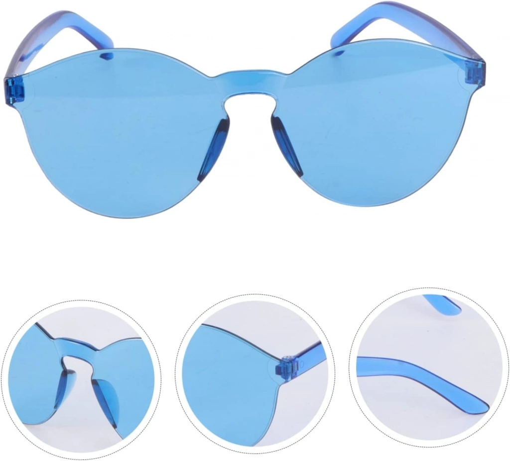ÇOK SATAN Sert Mika Oval Şekilli Çerçevesiz Mavi Gözlük Retro Parti 5x14 cm