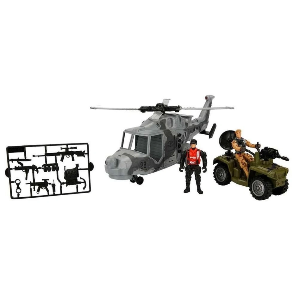 Kutu içerisinde; askeri helikopter, askeri jeep, 2 adet figür ve çeşitli aksesuarlar yer almaktadır.