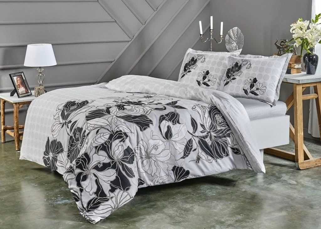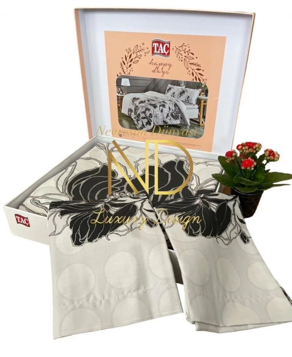 • Taç Çift Kişilik Saten Nevresim Takımı Sharon Gri