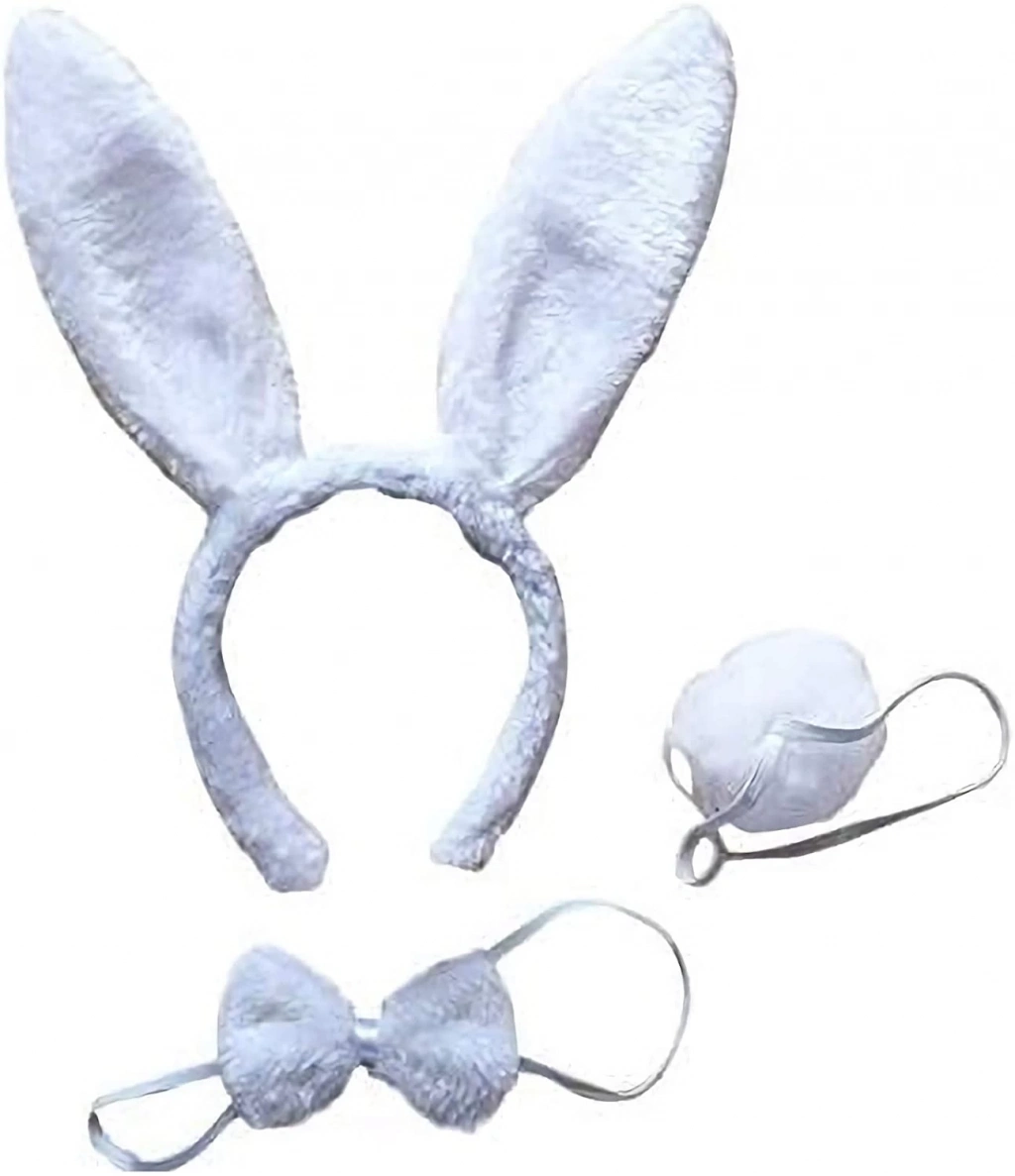 ÇOK SATAN Tavşan Kostüm Seti Taç Papyon Kuyruk Beyaz Renk