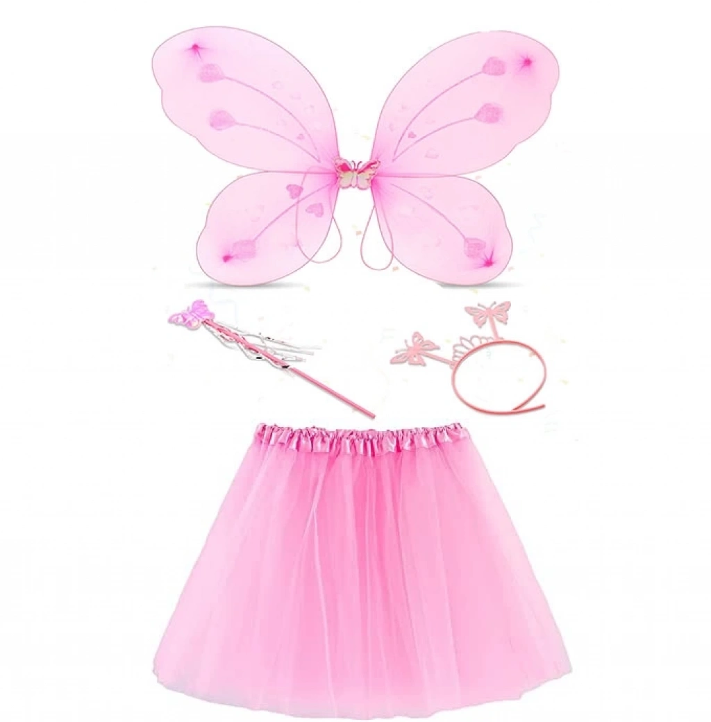ÇOK SATAN Toz Pembe Kelebek Kostümü - Toz Pembe Kelebek Kostüm Aksesuar Seti 4 Parça