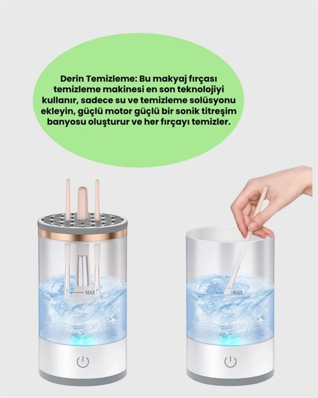 Makyaj fırçalarını düzenli olarak temizlemek hem cildiniz hem de fırçalarınızın ömrü için kritik önem taşır. Bu cihaz, fırçaları derinlemesine temizleyerek üzerindeki kalıntıları, bakterileri ve yağı yok eder.Fırçaların dokusuna zarar vermeyen sonik temizlik teknolojisi, yumuşak ve hassas temizlik sağlar. Geniş kapasitesi sayesinde aynı anda birden fazla fırçayı yıkayabilirsiniz.Kurulum gerektirmeyen bu sistem, sadece su ve temizlik solüsyonu ile çalışır. Fırçalarınızı yerleştirin, tuşa basın ve cihaz gerisini halletsin.Taşınabilir yapısı ve USB kablosu ile her yerde kolay kullanım sunar. Silikon kapağı genişletilebilir özellikte olup farklı fırça tiplerine uyumludur.Bu cihaz, hem pratikliği hem de hijyenik yapısı sayesinde her makyaj tutkununun bakım rutininin bir parçası olmaya adaydır.