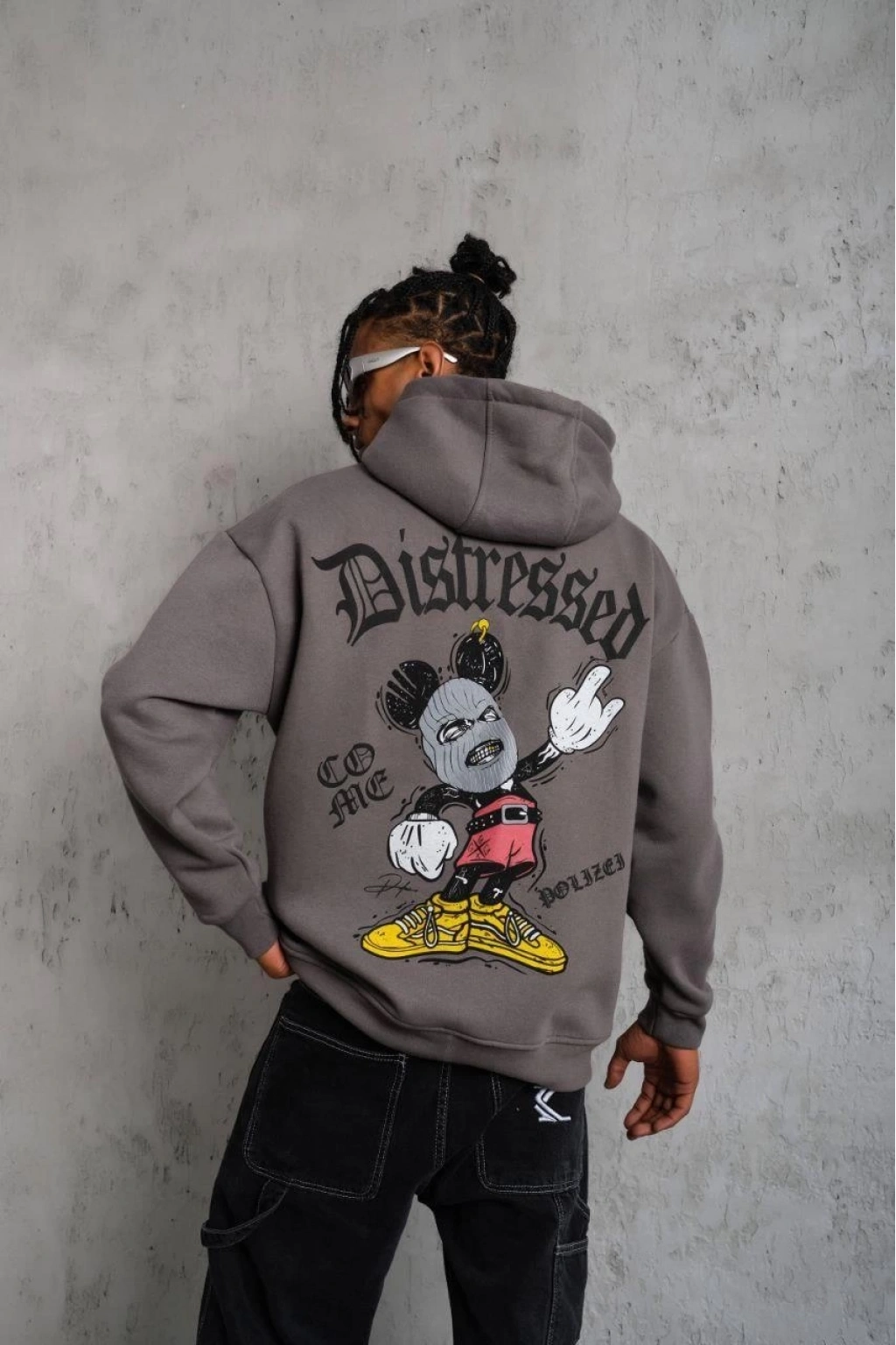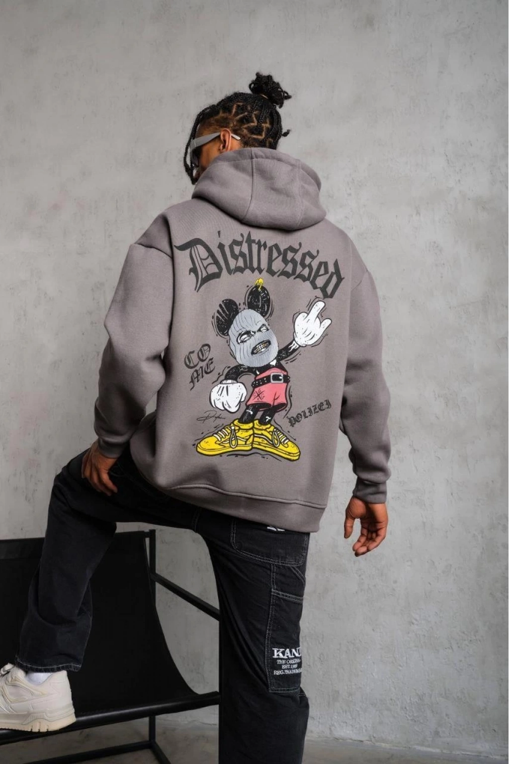 Üç İplik Baskılı Kapüşonlu Sweat - Gri