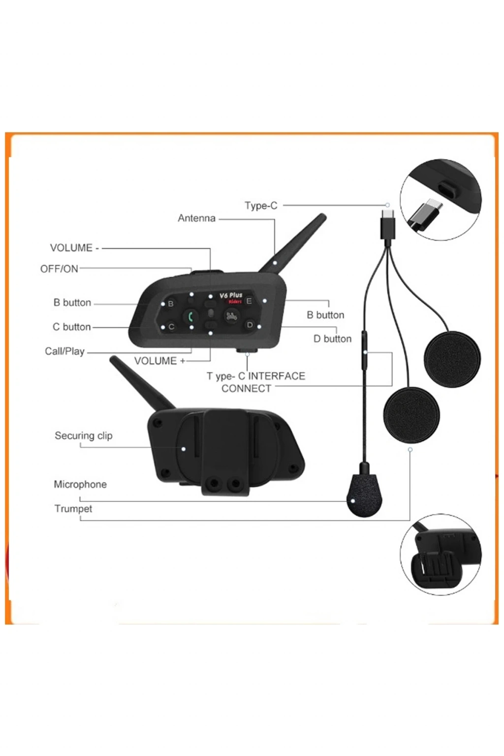 • V6 Plus Motorsiklet Kaskı İntercom Su Geçirmez 1200 M