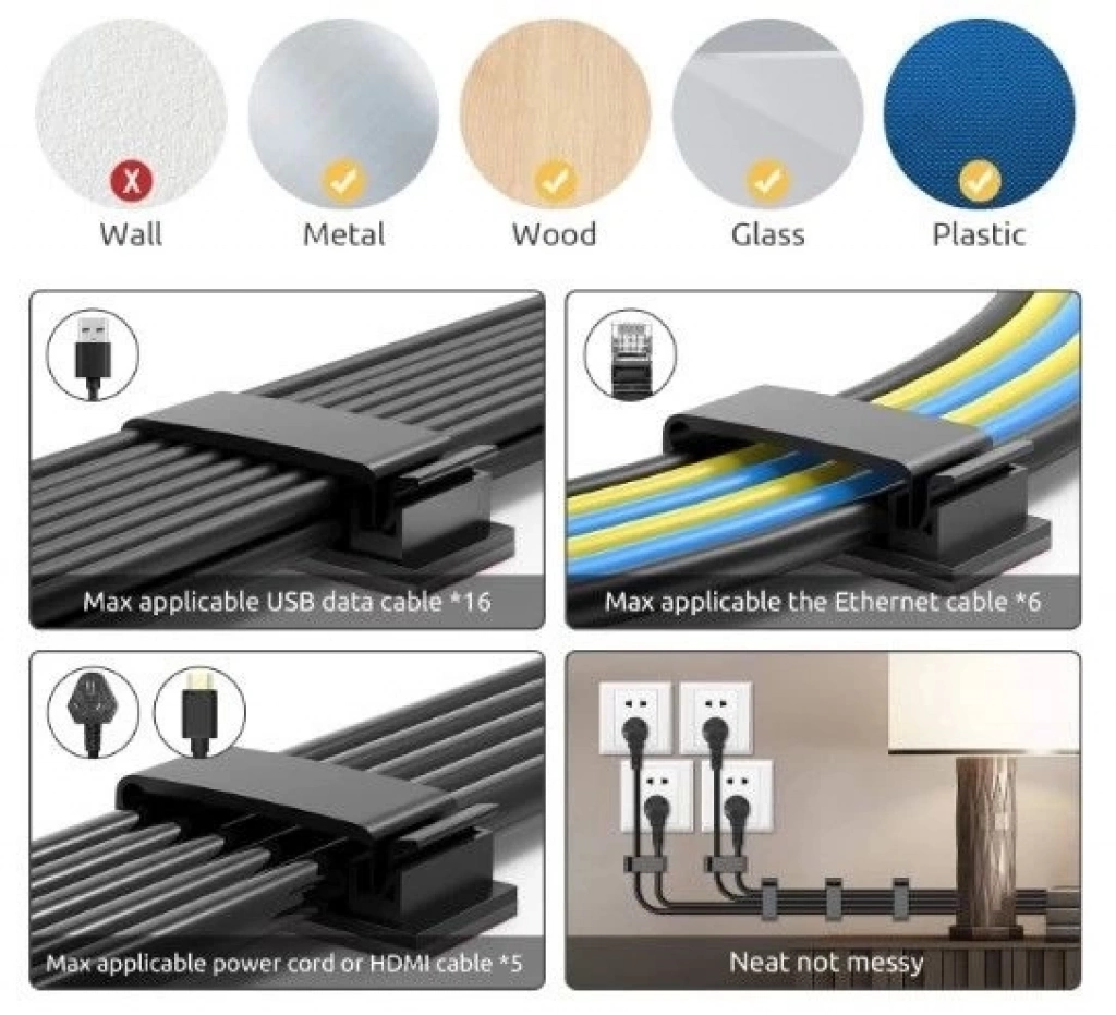 Paket içeriği : 4 Adet Yapışkanlı Kablo Düzenleyici Klips