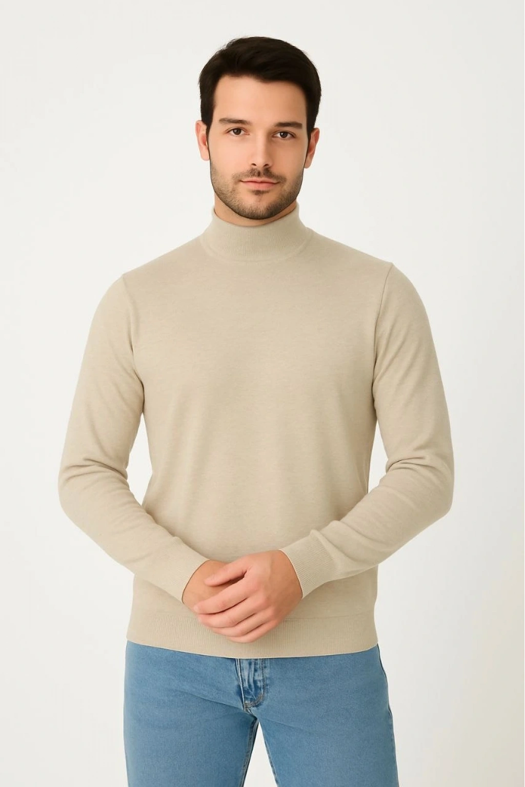 Yarım Boğaz Triko Kazak-hat Regular kalıp - Bej