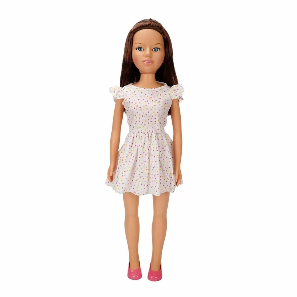 80 cm uzunluğundaki Clara; koyu pembe ayakkabı ve puantiye desenli bir elbise veya açık pembe ayakkabı,