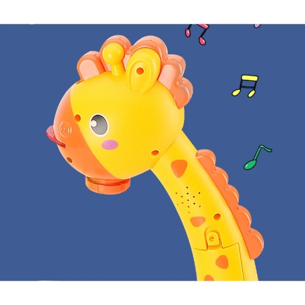 ZÜRAFA TASARIMLI PROJEKSİYONLU BOYAMA TAHTASIÜrün ÖzellikleriÇocukların hayal gücünü ve el becerilerini geliştirmek için tasarlanmış zürafa figürlü projeksiyonlu boyama tahtası, eğlenceli ve öğretici bir oyun deneyimi sunar. Zürafa şeklindeki projeksiyon cihazı farklı görselleri masanın üzerine yansıtarak çocukların kolayca boyama yapmalarına yardımcı olur. Su ile nemlendirilerek kolayca silinebilir. Kendi içerisindeki müzik özelliği ile boyama yaparken çocukların müzik dinleyerek eğlenceli vakit geçirmelerini sağlar. Set içerisinde 12 adet renkli kalem, 3 farklı projeksiyon slaytı (renkler karışık), 1 adet silgi aparatı ve 1 adet çizim defteri yer alır. Dayanıklı plastik malzemeden üretilmiştir. 38 cm yükseklik, 29,5 cm genişlik ve 25 cm derinlik ölçülerindedir. Paket İçeriği1 adet Zürafa Tasarımlı Projeksiyonlu Boyama Tahtası