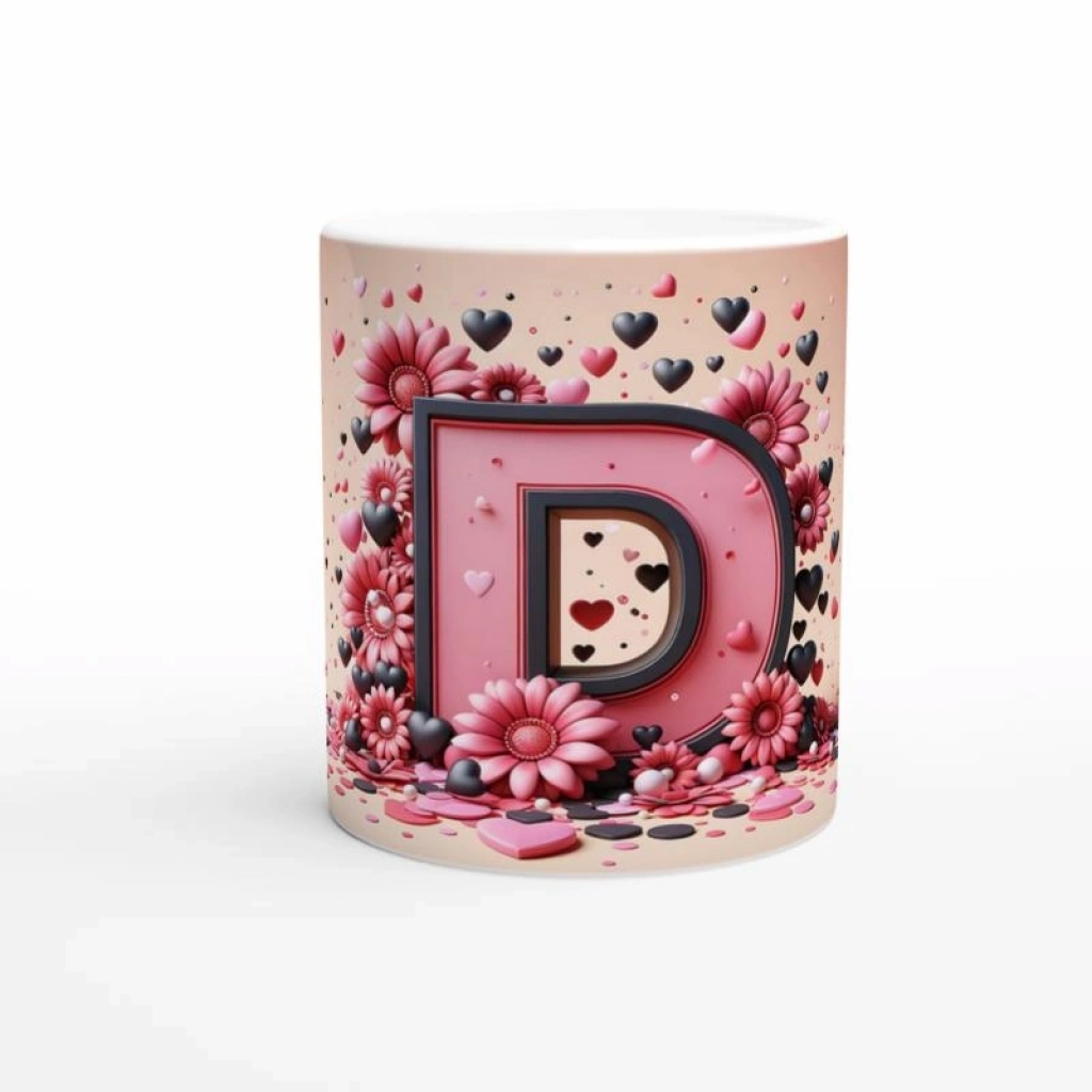 Canlı renkler ve özenle yerleştirilmiş detaylarla süslenen D harfi kupa bardak, isme özel hediyelik arayanlar için ideal bir tercih.