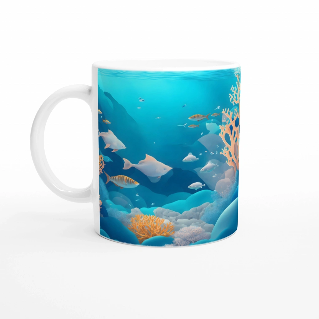 Bu deniz temalı kişiye özel kupa bardak; su altı dünyası baskılı kupa, deniz canlıları kupa bardak, okyanus temalı kahve kupası, balık desenli kişiselleştirilmiş kupa gibi anahtar kelimelerle arama yapanlar için ideal bir tercihtir.