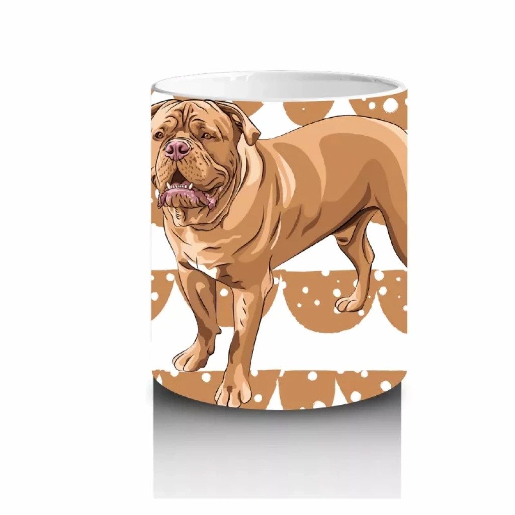 Desenli Arka Planda Realistik İngiliz Bulldog İllüstrasyonu – Baskılı Kahve Kupası