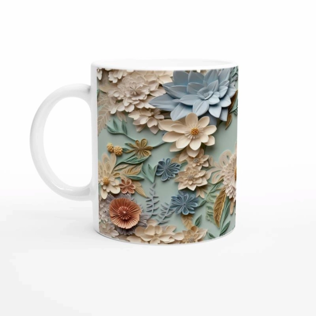 Doğal Bahar Esintisi Rölyef Çiçekli Kupa Bardak