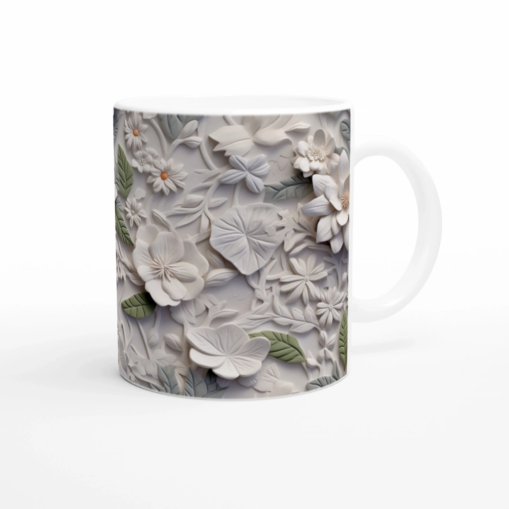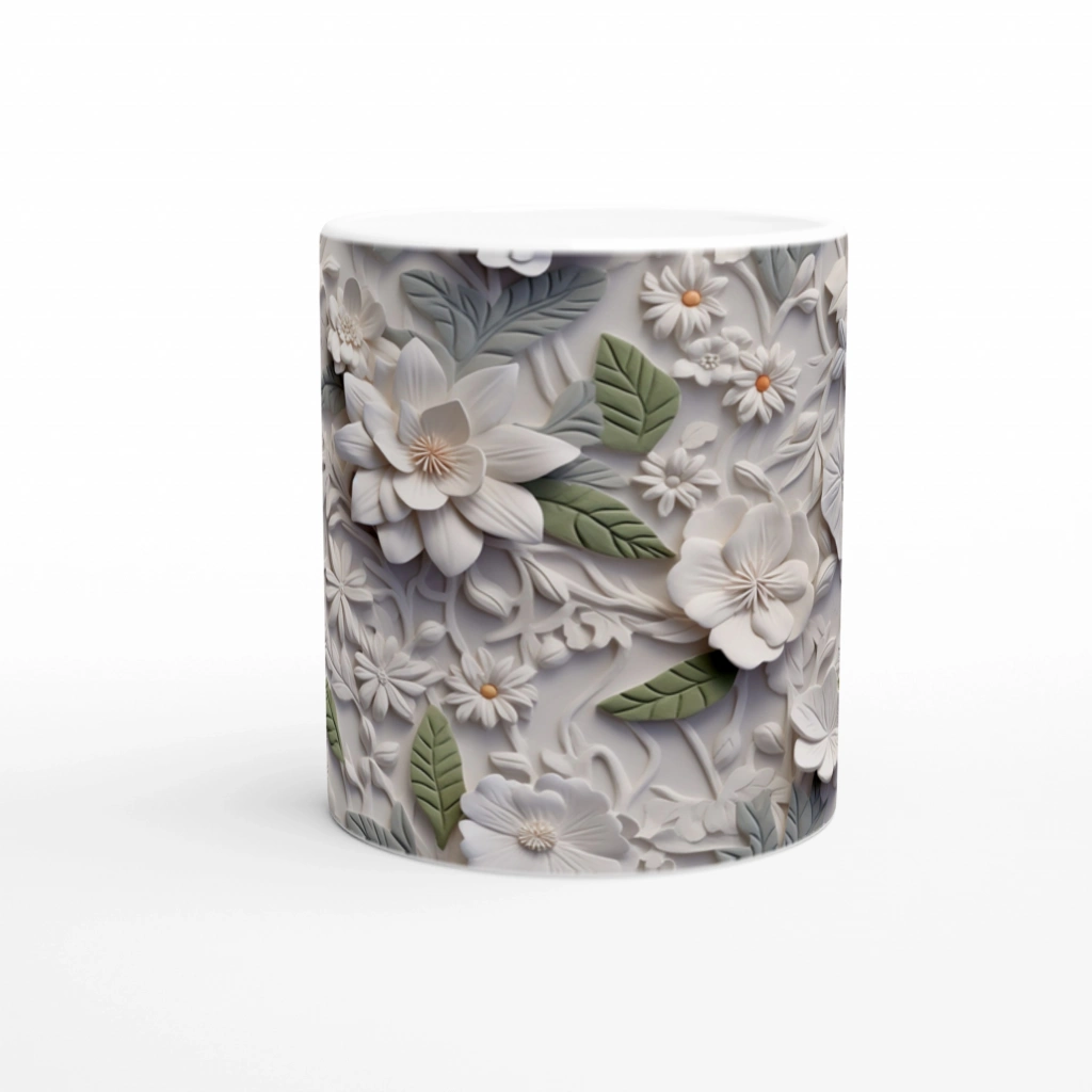 Doğal Dinginlik Çiçekli Kupa Bardak, sade tonlardaki zarif çiçek detaylarıyla çay ve kahve molalarınıza sakinlik katıyor.
