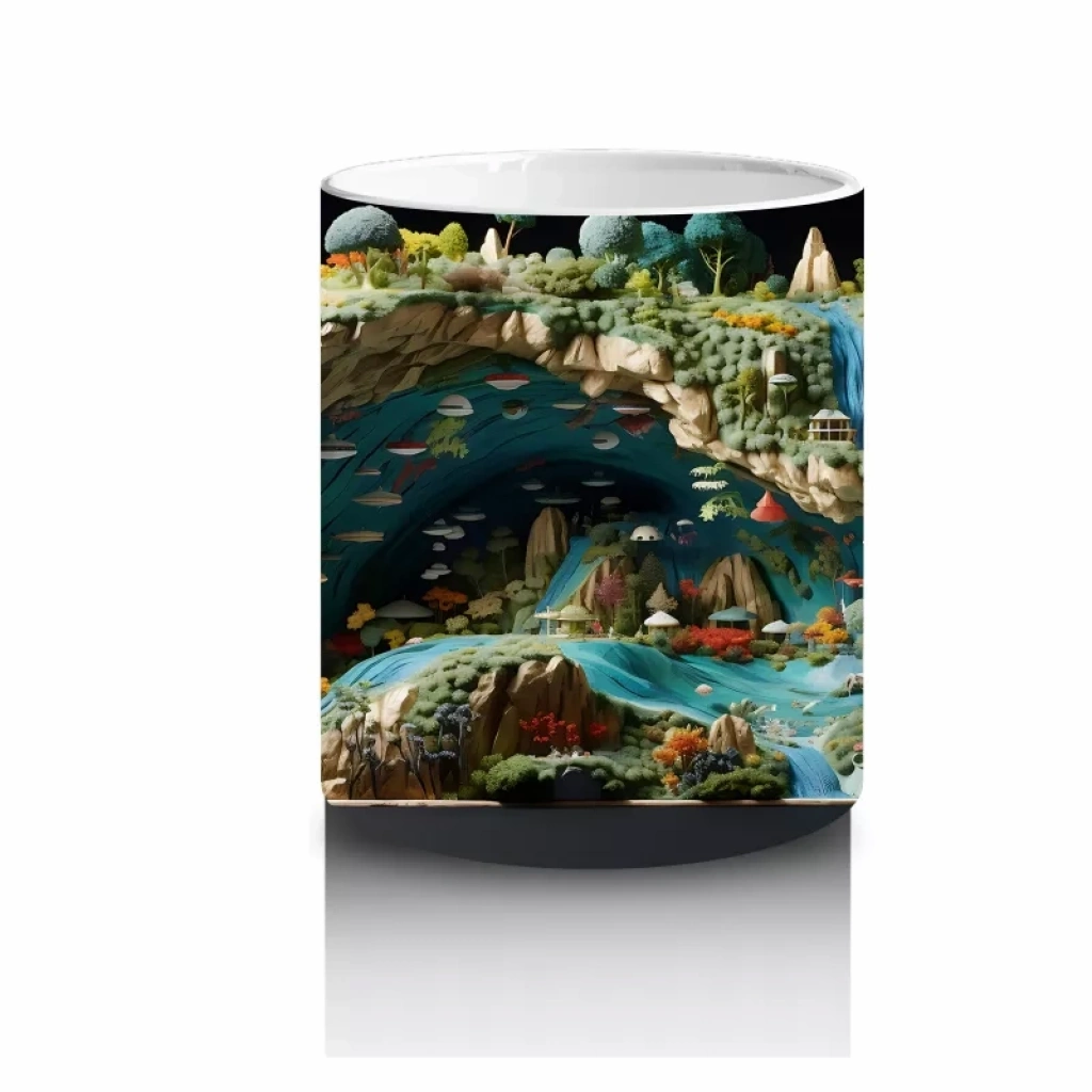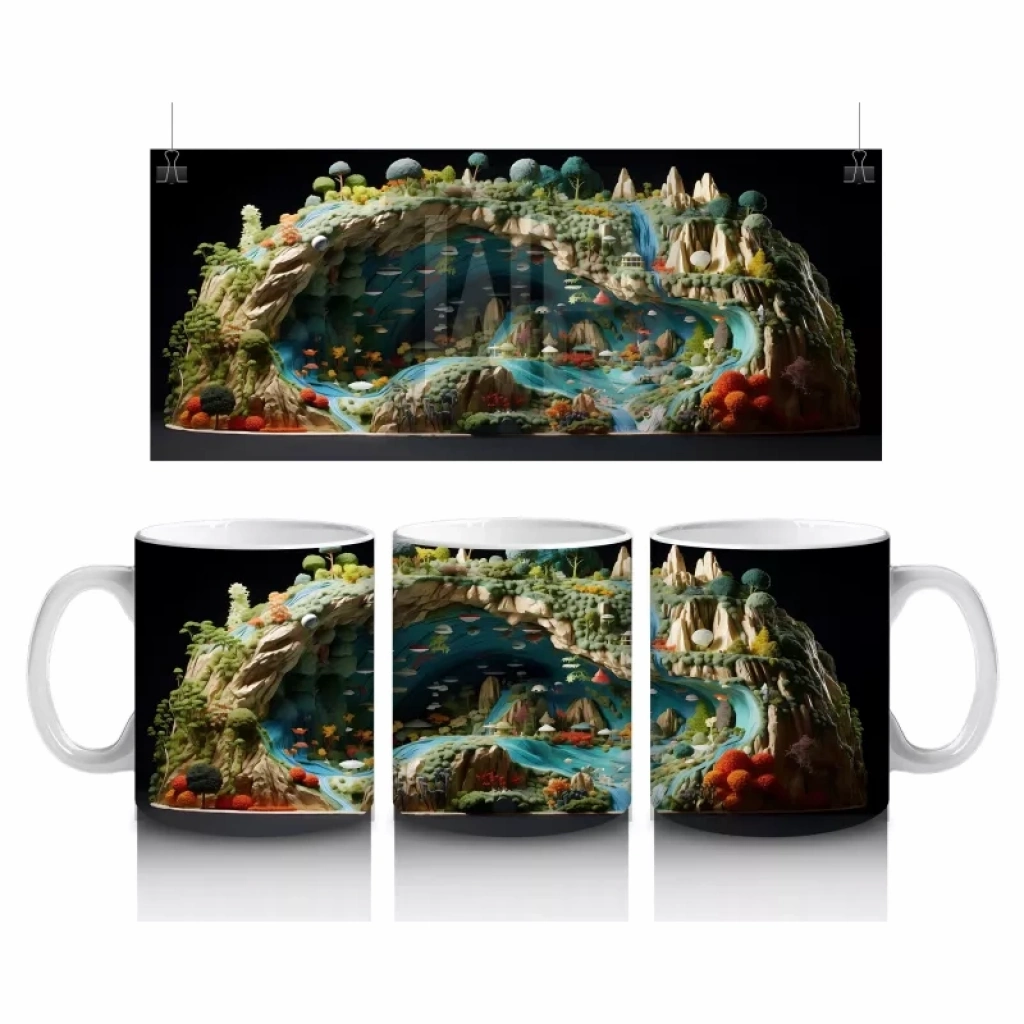 Doğal Göl Manzarasında Tropikal Kertenkele – Baskılı Kahve Kupası