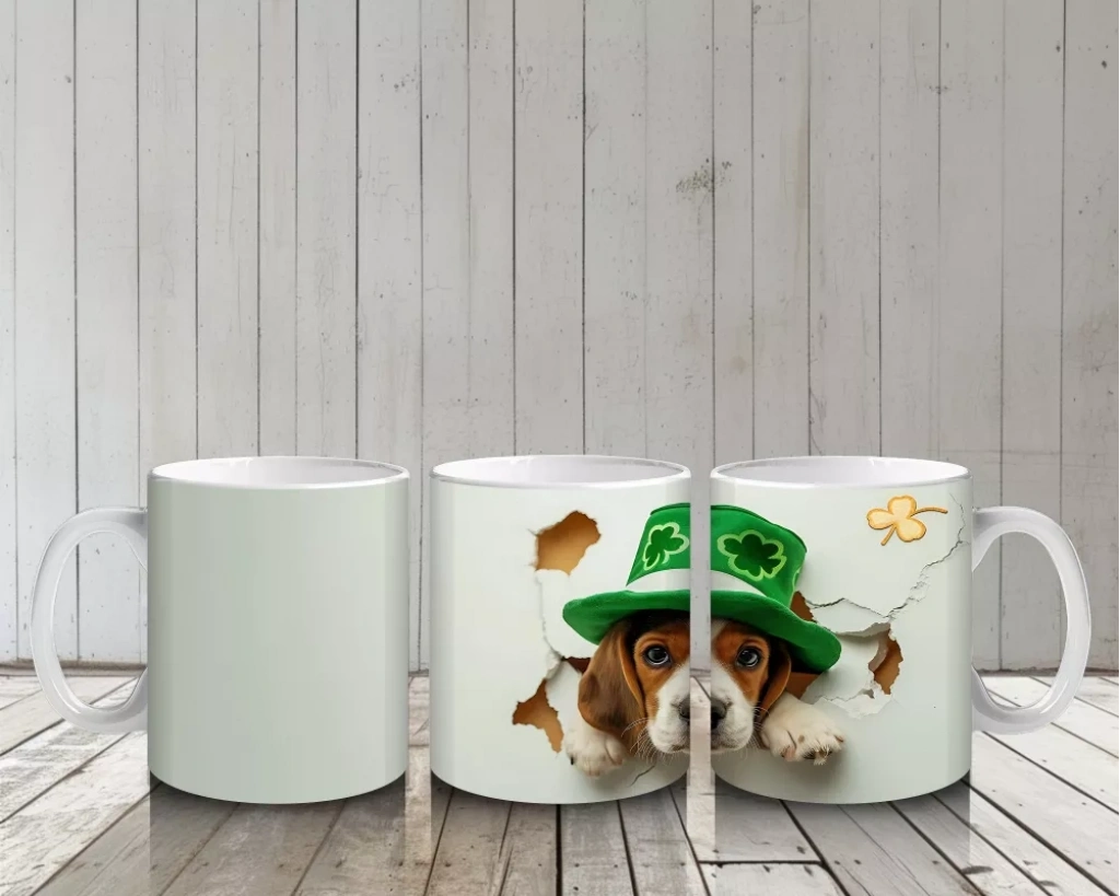 Dört Yapraklı Yonca Şapkasıyla Sevimli Köpek – Baskılı Kahve Kupası