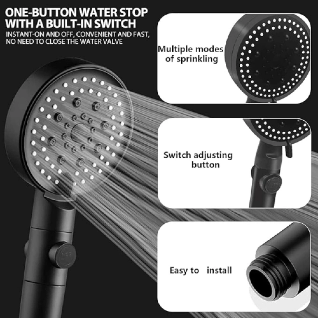 DUŞ BAŞLIĞI SETİ 5 MOD“Konforlu ve Uzun Ömürlü Duş Deneyimi”Su tasarruflu duş başlığı, yüksek kaliteli ve dayanıklı ABS malzemeden üretilmiştir. Paslanmaz çelik hortumu 1,50 metre uzunluğundadır ve oldukça esnek, bükülmez bir yapıya sahiptir. 5 farklı püskürtme modu sunan başlık, sis, yumuşak, duş, karışık ve nabız modları ile her ihtiyaca uygun bir duş deneyimi sağlar. Kolay kurulumu sayesinde herhangi bir alet gerektirmeden standart hortumlara bağlanabilir. Tek düğmeyle suyu durdurma özelliği sayesinde enerji tasarrufu sağlar. Güçlü ve çok fonksiyonlu duş başlığı, şampuanlama, nazik duş, masaj, çocuk veya evcil hayvan banyosu gibi birçok amaç için idealdir.Paket İçeriği1 adet duş başlığı 5 mod1 adet hortum