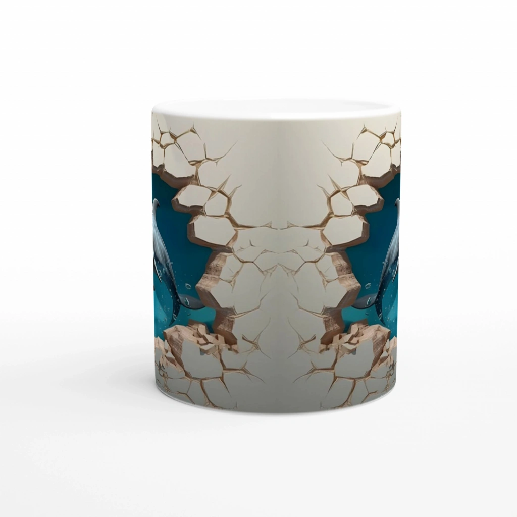 Bu 3D illüzyon efektiyle tasarlanmış yunus baskılı kupa bardak, duvarı yarıp gelen bir deniz dostunu mutfağınıza taşıyor!