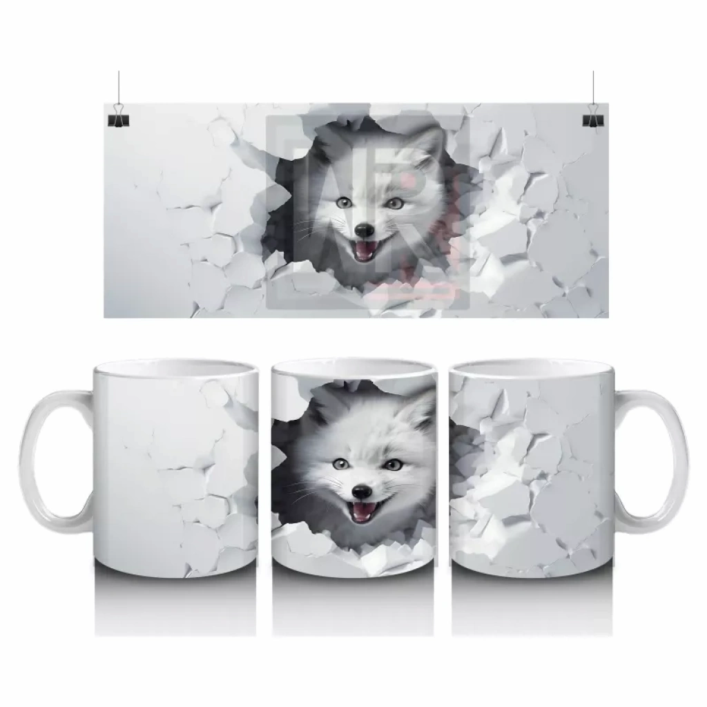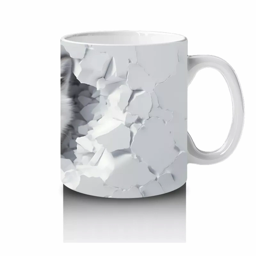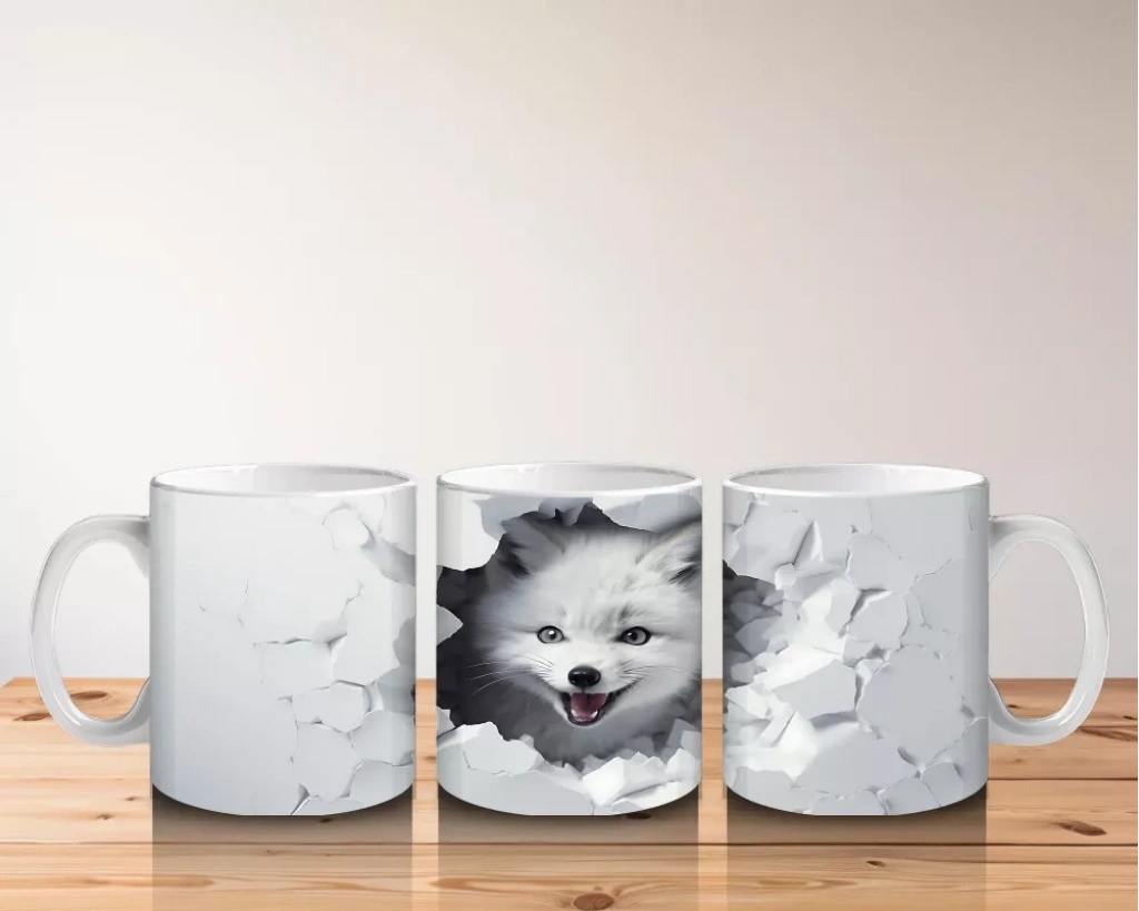 Duvar patlağından bakan gri tilki figürü, sıcaklık ve doğallığı yansıtıyor. Doğa temalı ve samimi detayları sevenler için ideal bir kupa.