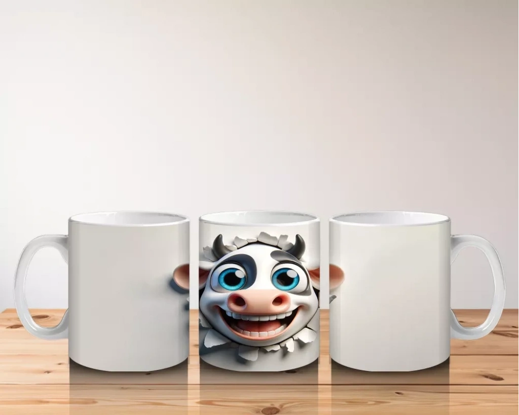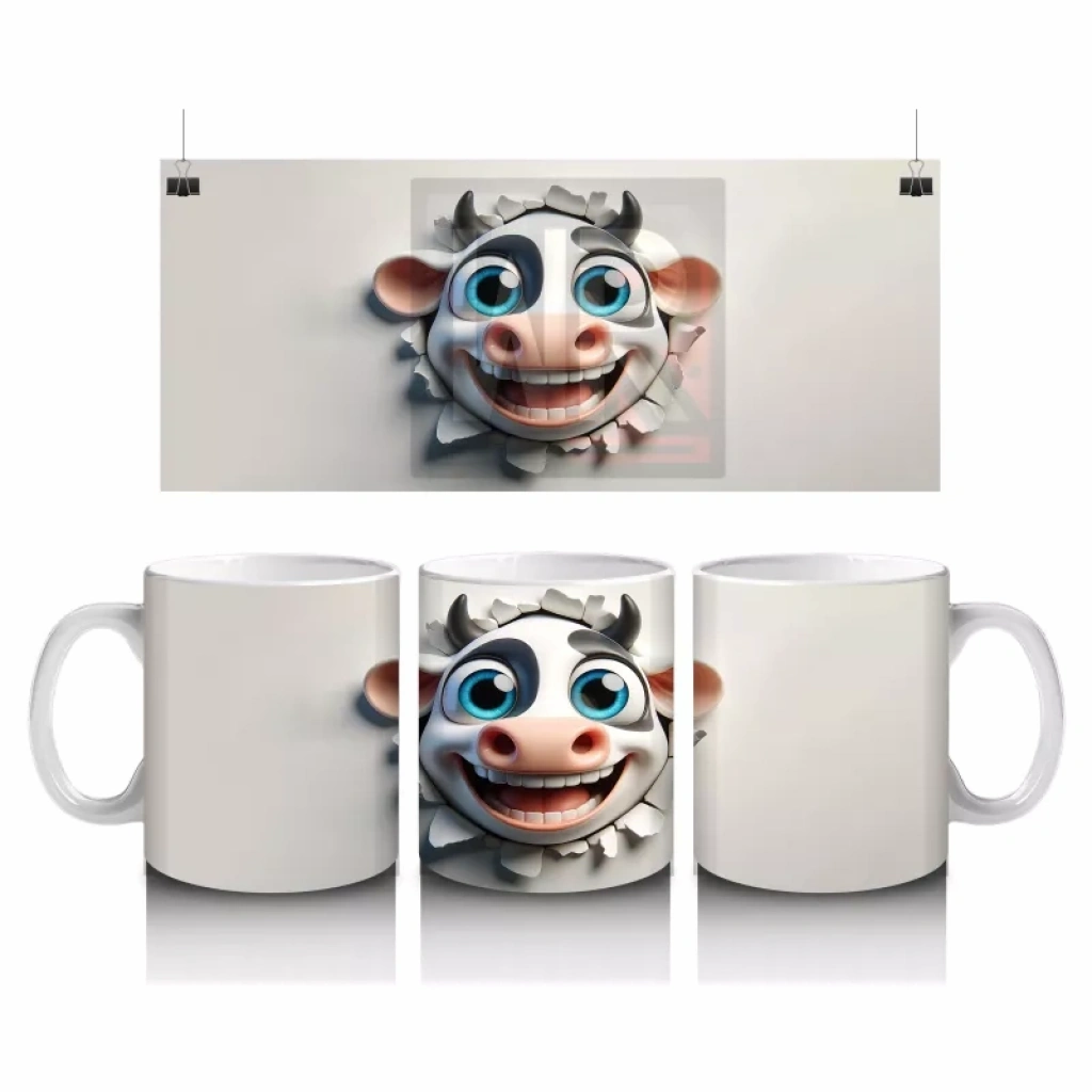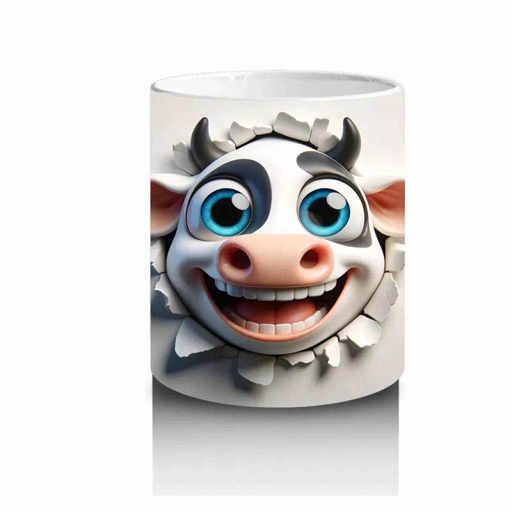 Duvarı Delen Gülümseyen Karikatür İnek Figürü - Baskılı kahve kupası