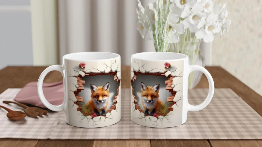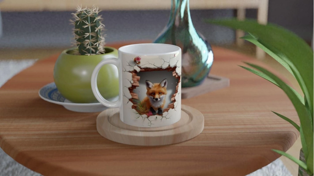 Duvarı Delen Tilki Baskılı Kupa Bardak, doğanın en zeki ve sevimli canlılarından ilham aldı.
