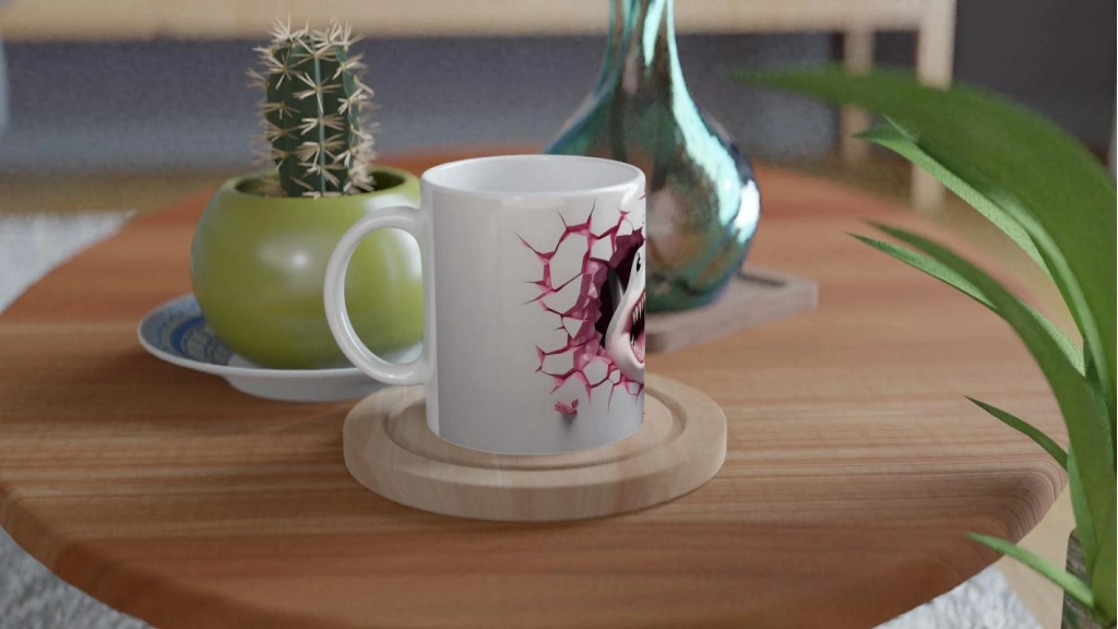 Duvarı Yırtan Köpekbalığı Temalı Baskılı Kupa Bardak