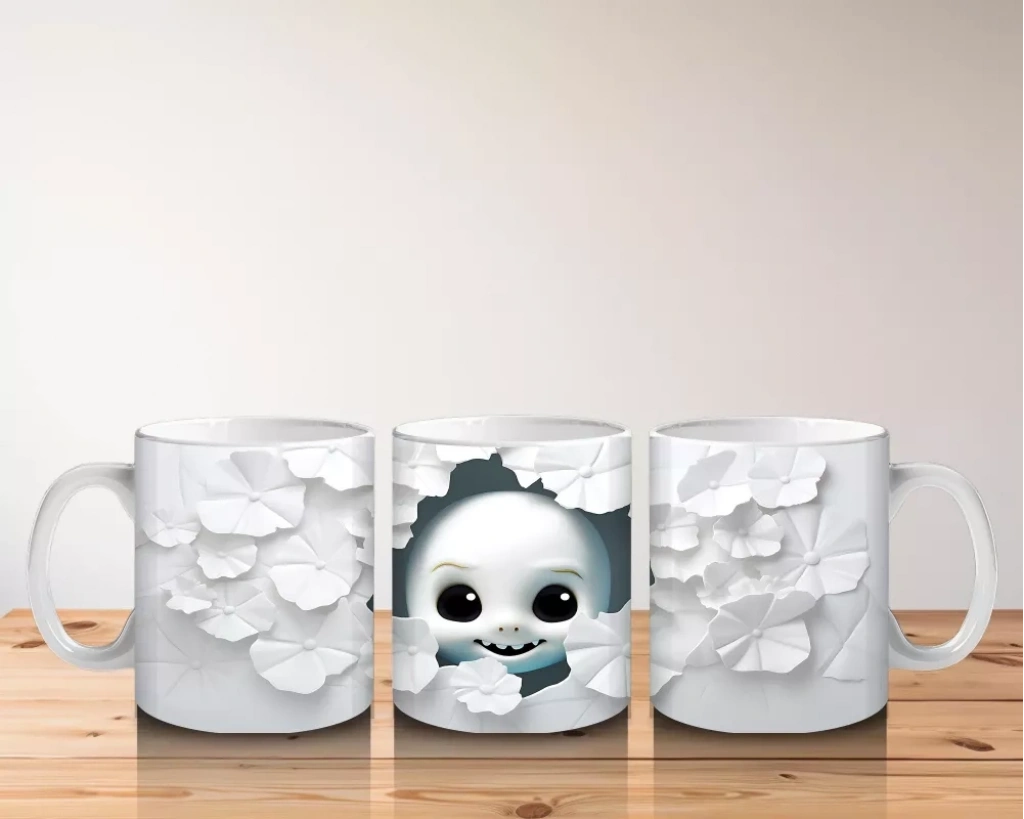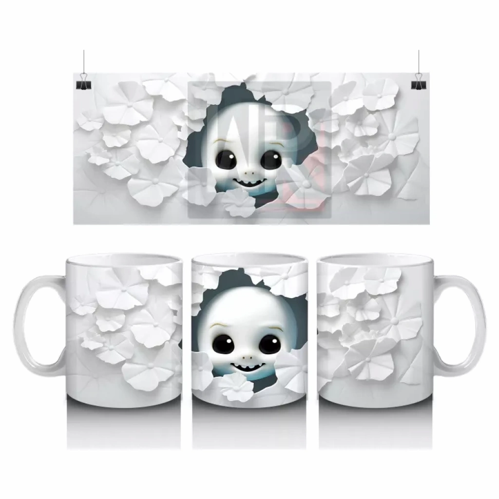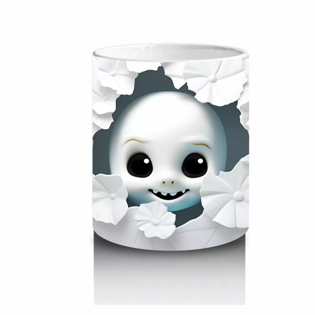 Gülümseyen Hayalet ve Sıcak Işıklar – Hediyelik Kahve Kupası Sıcak ışıklar eşliğinde gülümseyen sevimli hayalet tasarımıyla bu Cadılar Bayramı baskılı kupa, hem neşeli hem nostaljik bir atmosfer sunar. Şık bir hediyelik kahve kupası arayanlara özel.