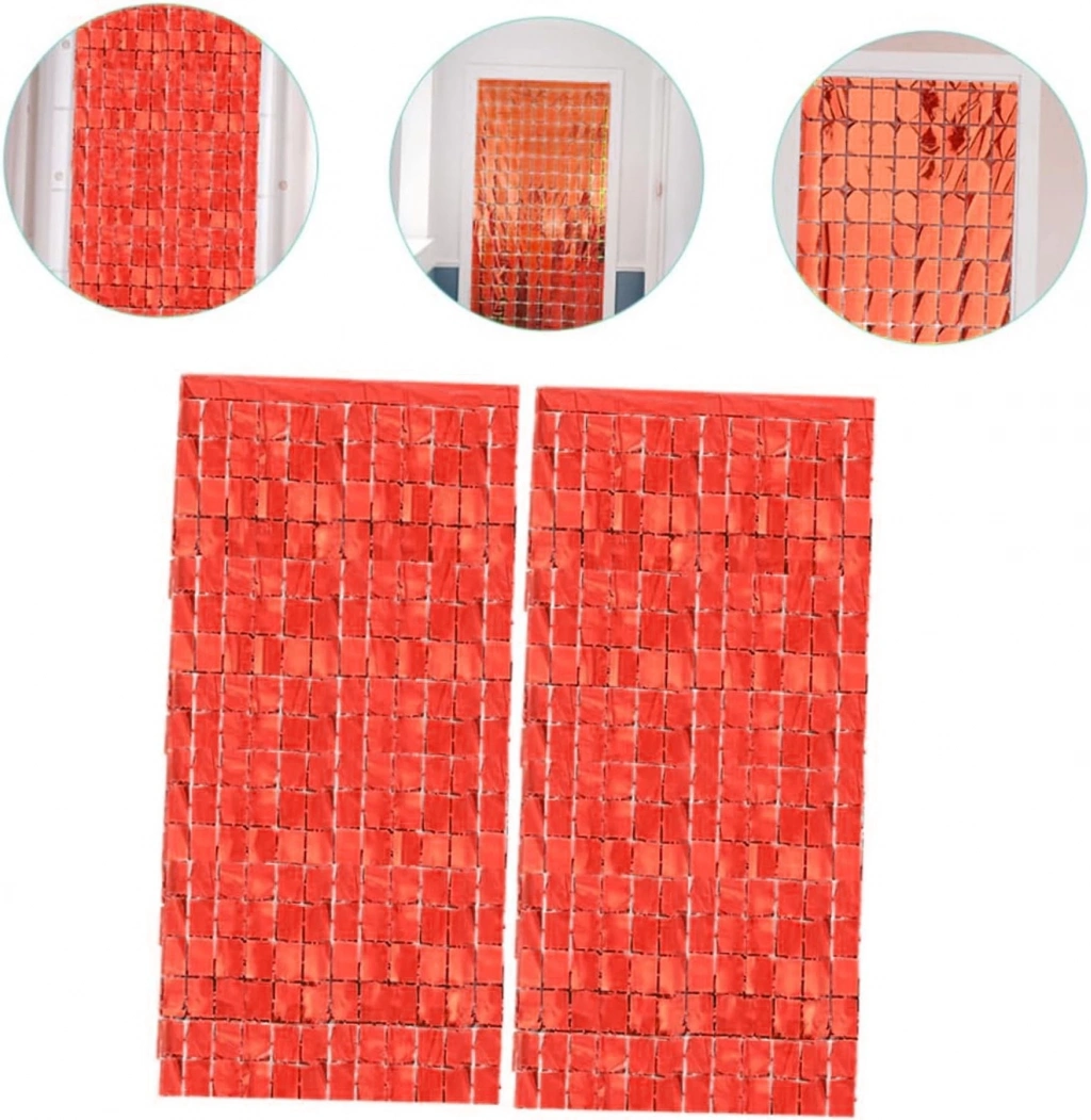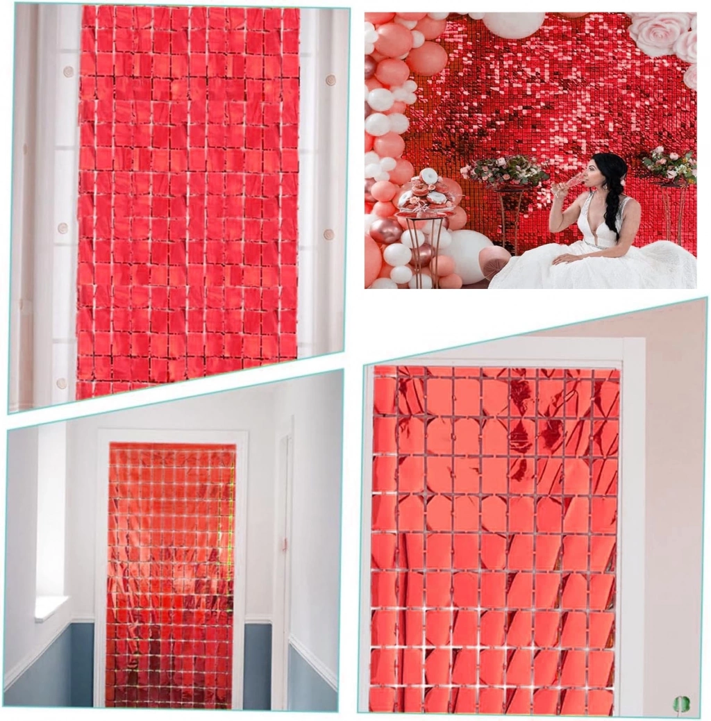 Ekstra Metalize Kırmızı Renk Disko Dikdörtgen Kesim Kapı Perdesi Dekorasyon 1x2 Metre