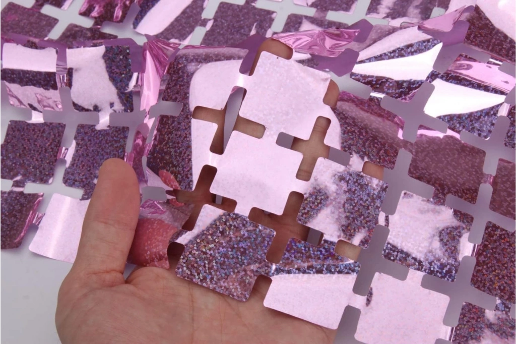 Ekstra Metalize Rose Gold Renk Disko Dikdörtgen Kesim Kapı Perdesi Dekorasyon 1x2 Metre