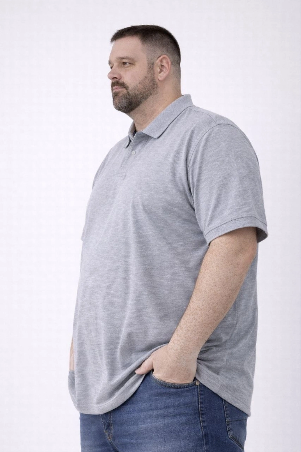 Erkek Pike Kumaş Düğmeli Yaka Battal Büyük Beden Günlük Kısa kol Tişört T-shirt - Gri
