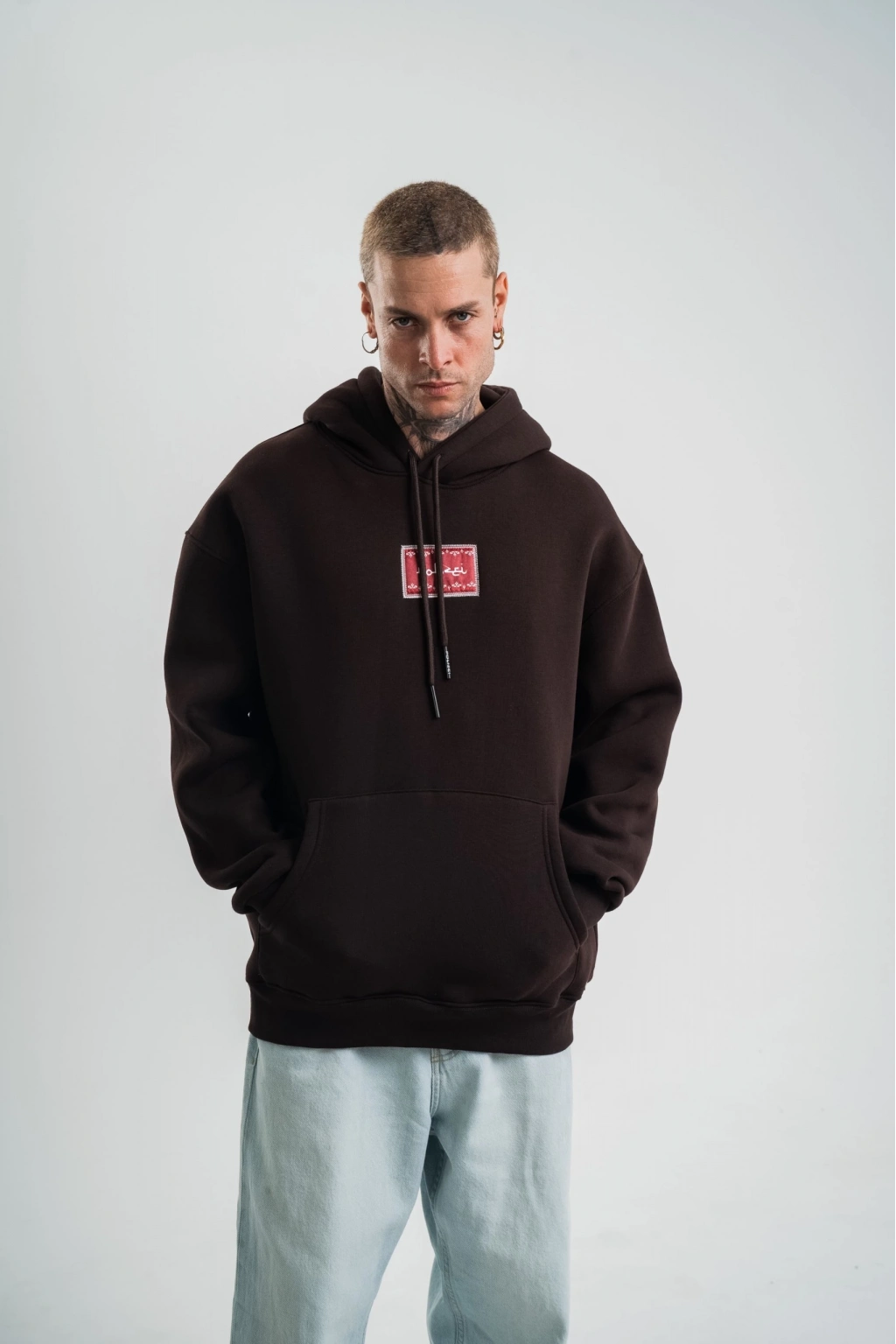 Erkek Premium Nakışlı Kapşonlu Sweatshirt Double Oversize Üç İplik Pamuklu - Siyah