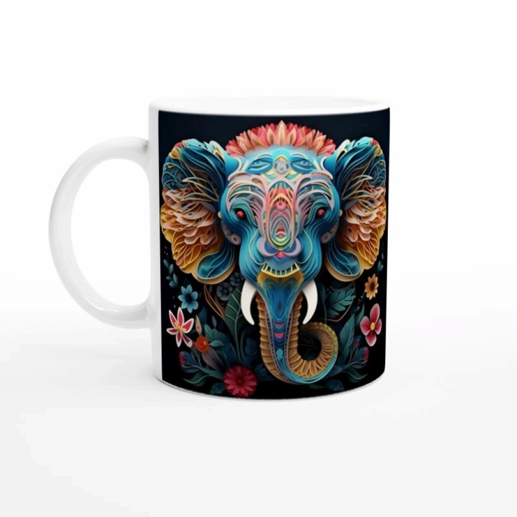Gücü, bilgeliği ve zarafeti temsil eden fil figürü, bu sanatsal kupa bardakta çarpıcı etnik desenlerle birleşti.